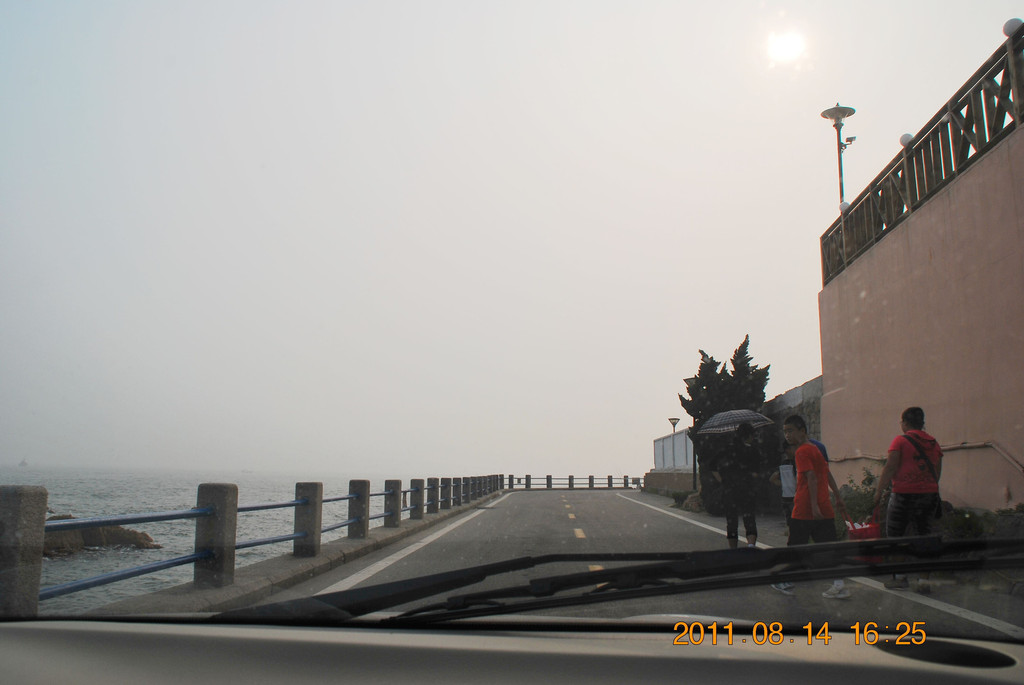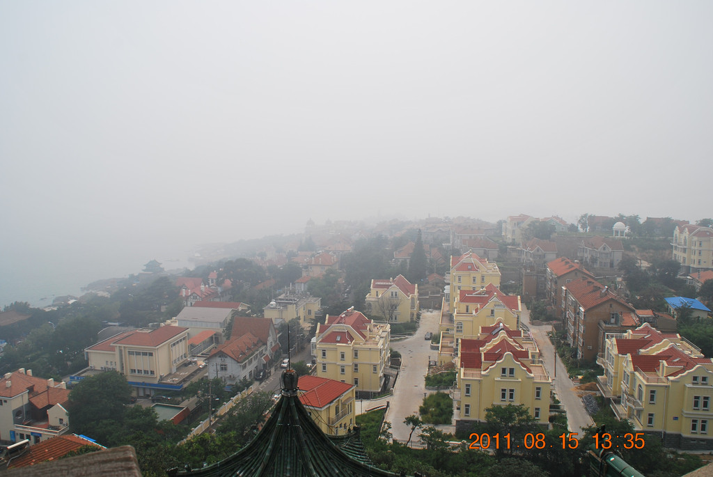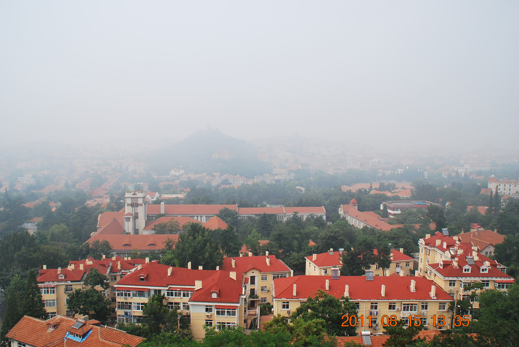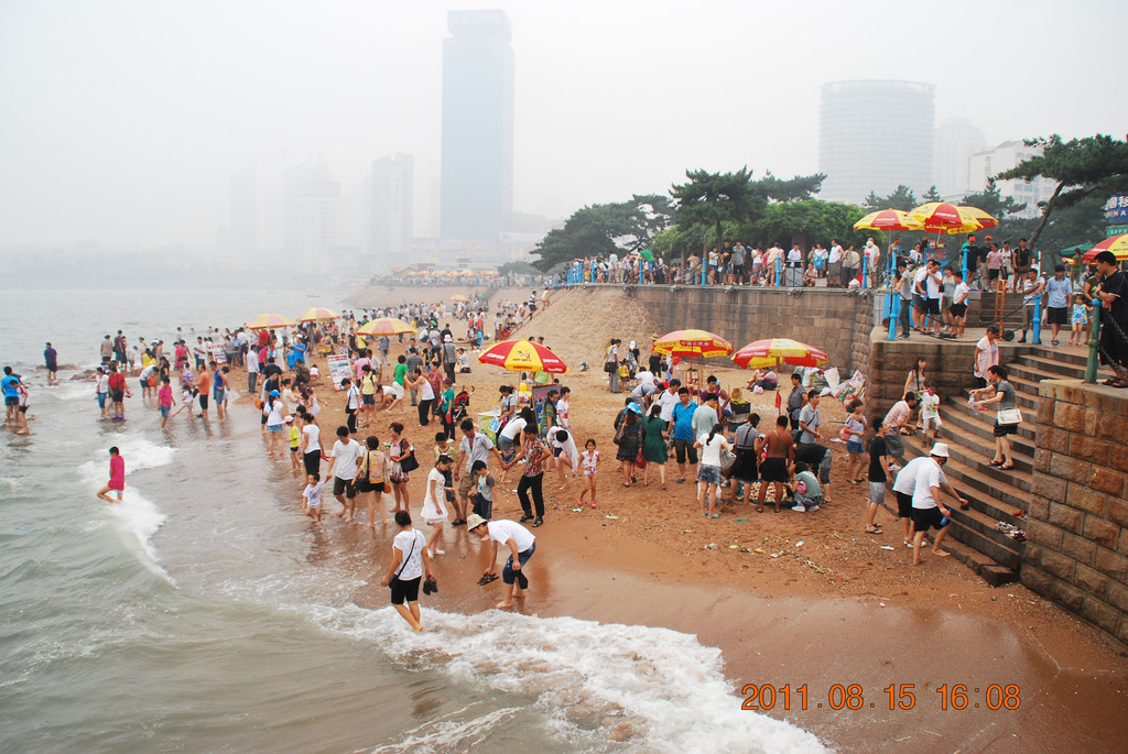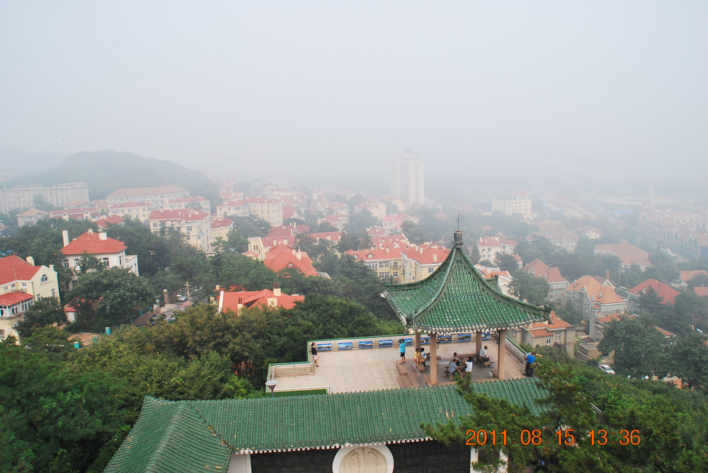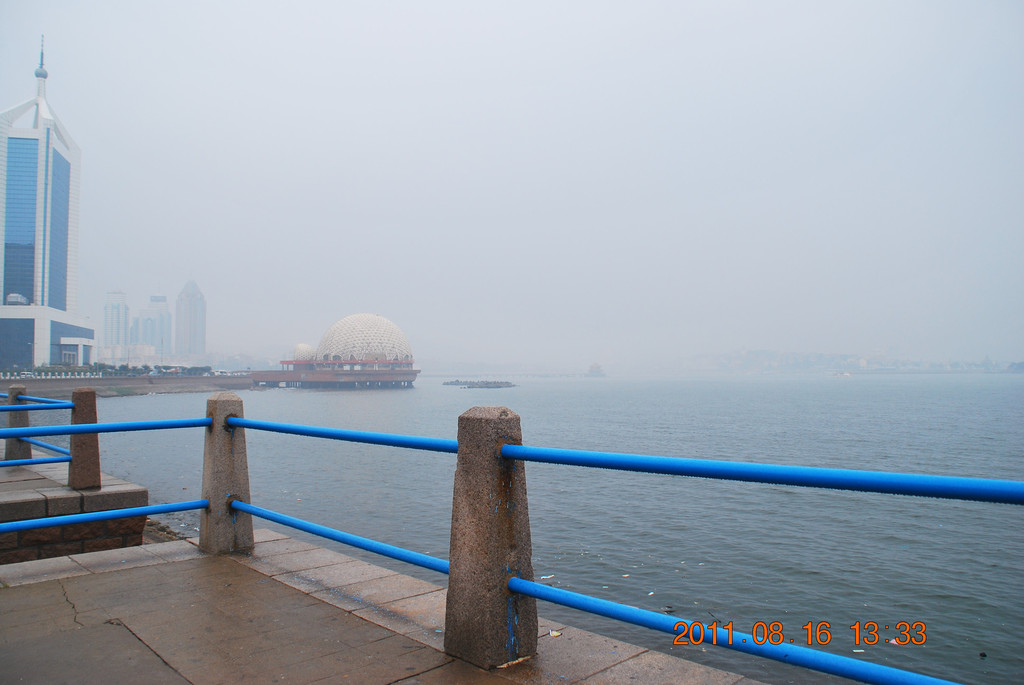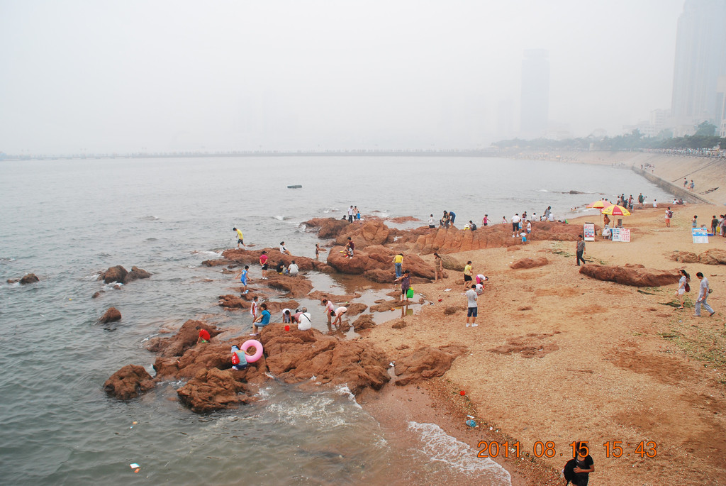 此行正好碰上青岛举行国际啤酒节活动,酒店特别紧张,住宿价格普遍上涨到400多元/晚。为了节省费用及保证住宿质量,我选择住在胶州如家,连着3天从胶州至青岛往返,两地间单次往返120多公里。另外,我从上海往青岛时,在江苏东台住宿一晚。离开青岛时,过新建成的胶州湾海底隧道,途径黄岛旅游,使此行到过的城市达到6个,全程2064公里。先发一张从花石楼楼上拍摄的青岛海滩风景照,是第二海水浴场,有雾但挺美的。