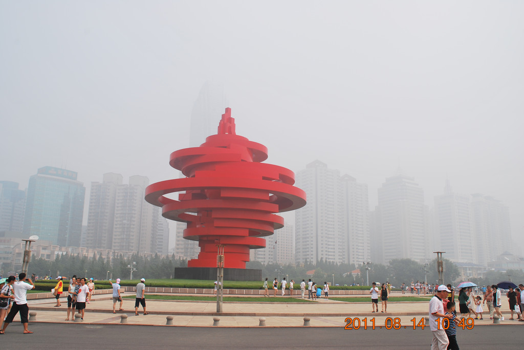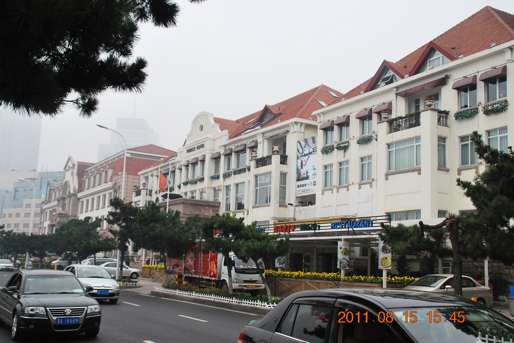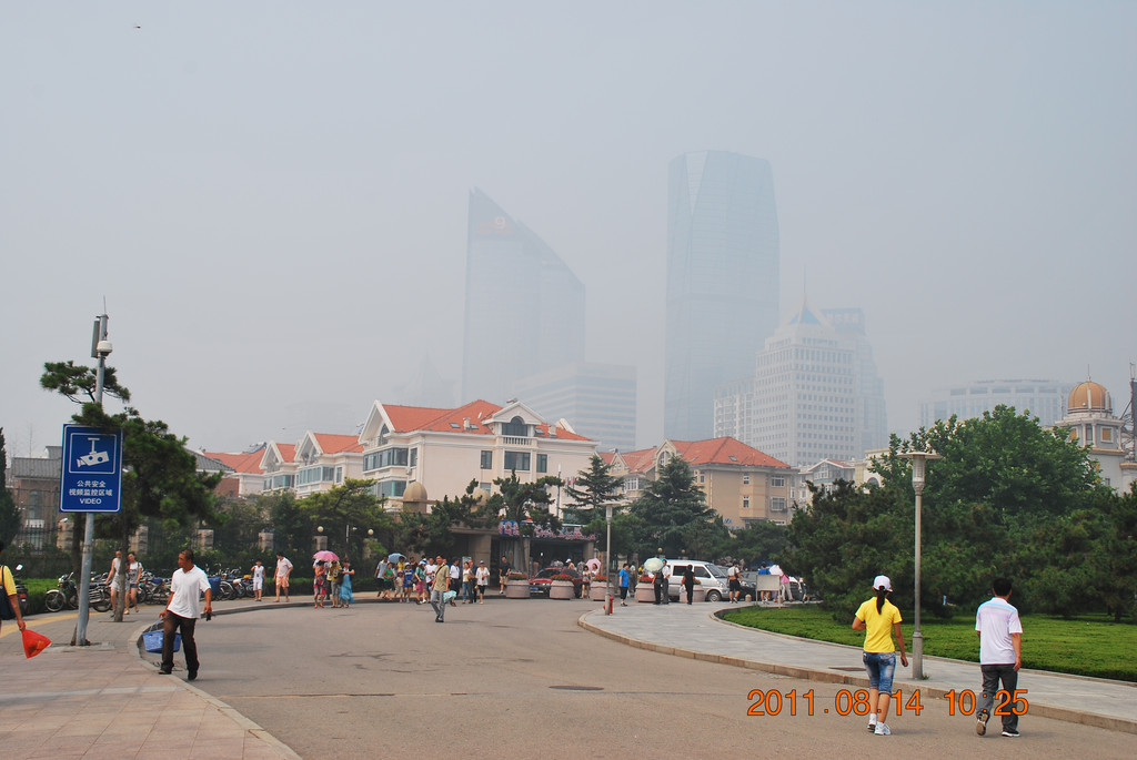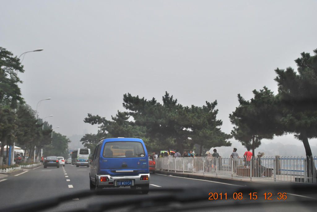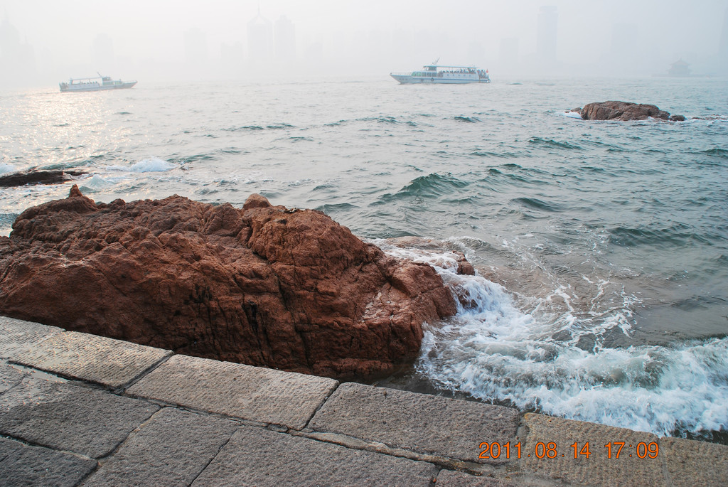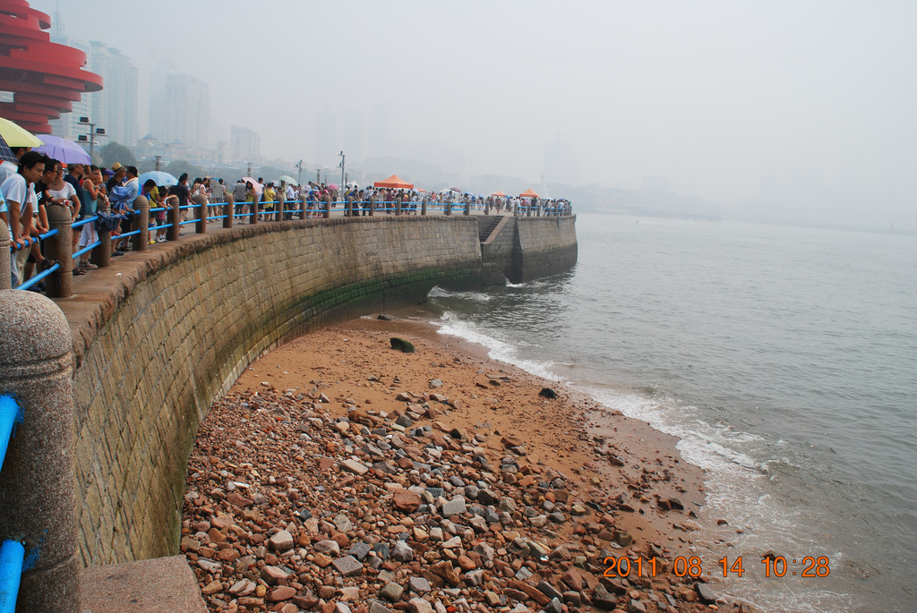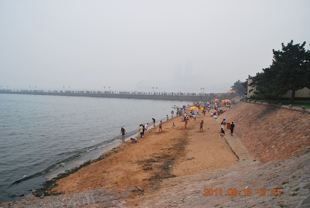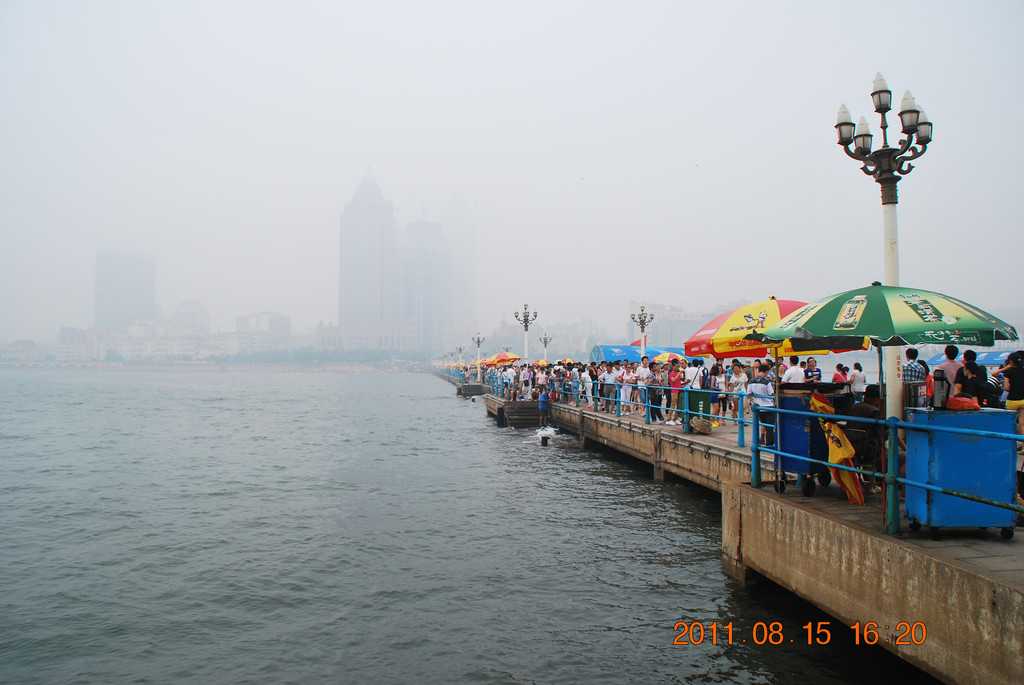 此行正好碰上青岛举行国际啤酒节活动,酒店特别紧张,住宿价格普遍上涨到400多元/晚。为了节省费用及保证住宿质量,我选择住在胶州如家,连着3天从胶州至青岛往返,两地间单次往返120多公里。另外,我从上海往青岛时,在江苏东台住宿一晚。离开青岛时,过新建成的胶州湾海底隧道,途径黄岛旅游,使此行到过的城市达到6个,全程2064公里。先发一张从花石楼楼上拍摄的青岛海滩风景照,是第二海水浴场,有雾但挺美的。