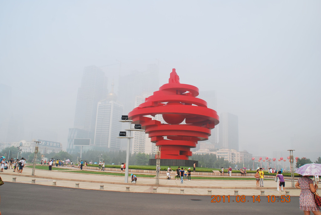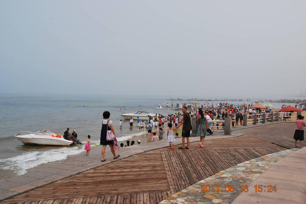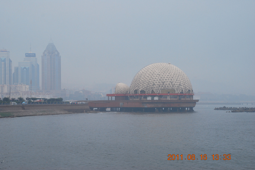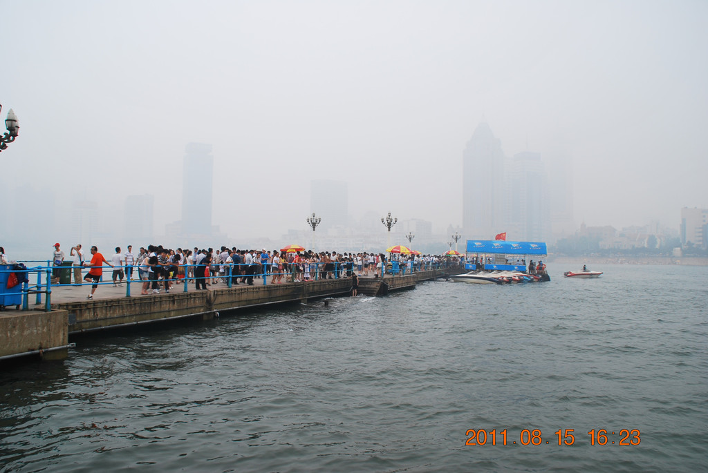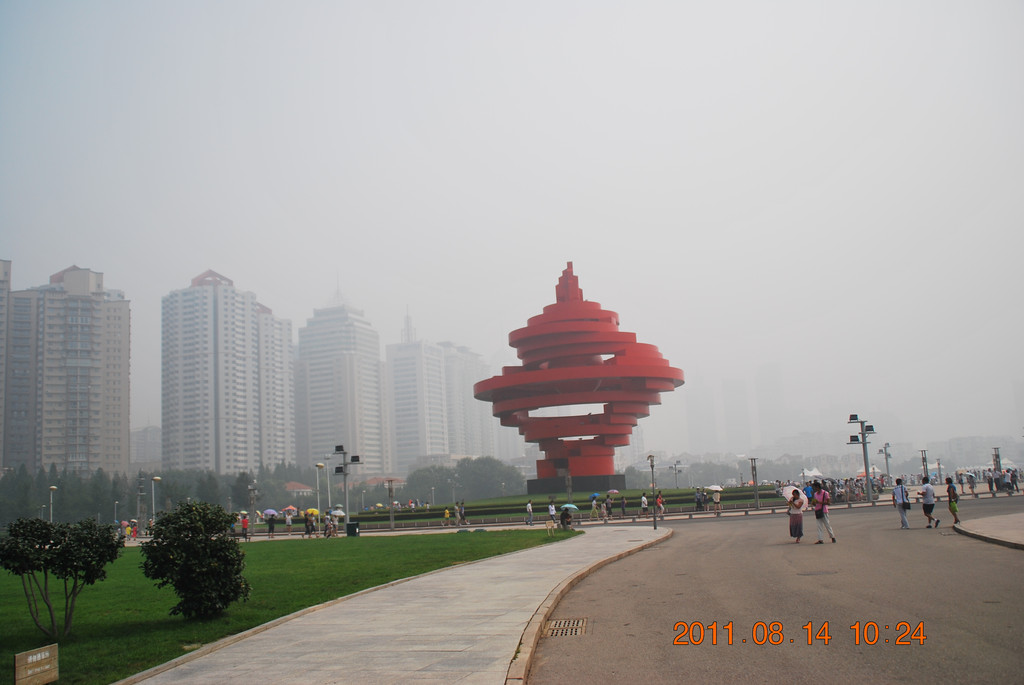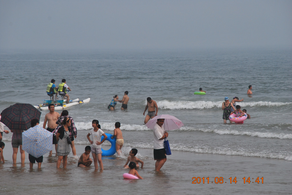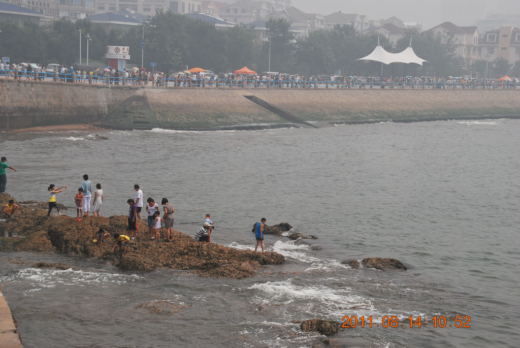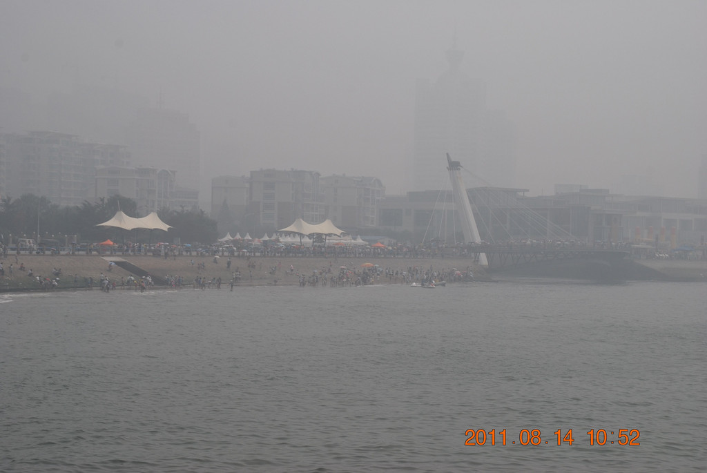 此行正好碰上青岛举行国际啤酒节活动,酒店特别紧张,住宿价格普遍上涨到400多元/晚。为了节省费用及保证住宿质量,我选择住在胶州如家,连着3天从胶州至青岛往返,两地间单次往返120多公里。另外,我从上海往青岛时,在江苏东台住宿一晚。离开青岛时,过新建成的胶州湾海底隧道,途径黄岛旅游,使此行到过的城市达到6个,全程2064公里。先发一张从花石楼楼上拍摄的青岛海滩风景照,是第二海水浴场,有雾但挺美的。