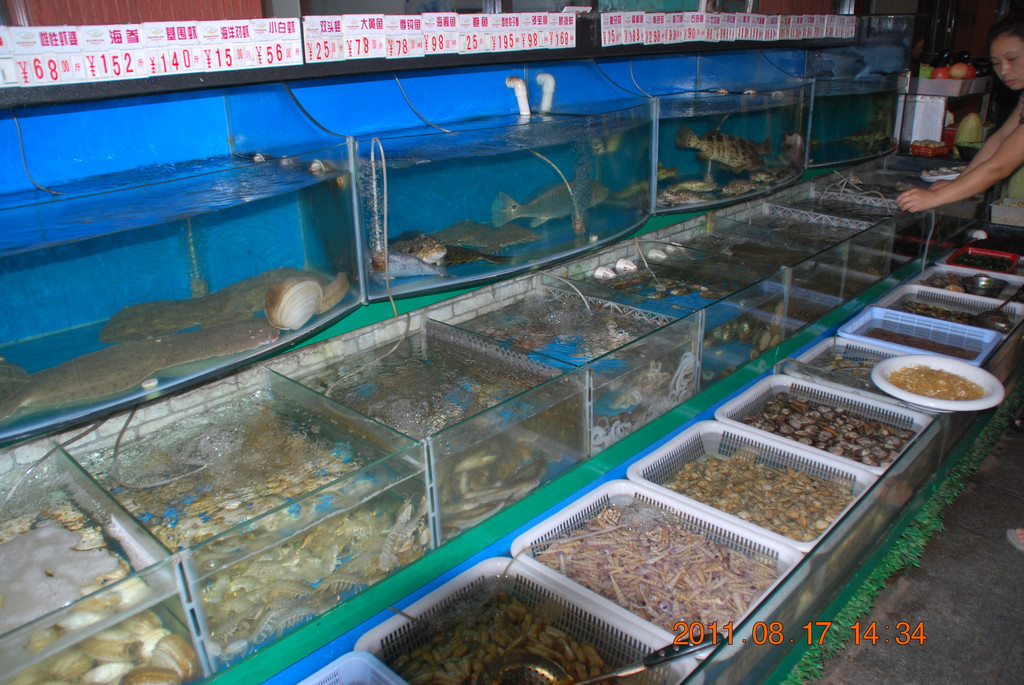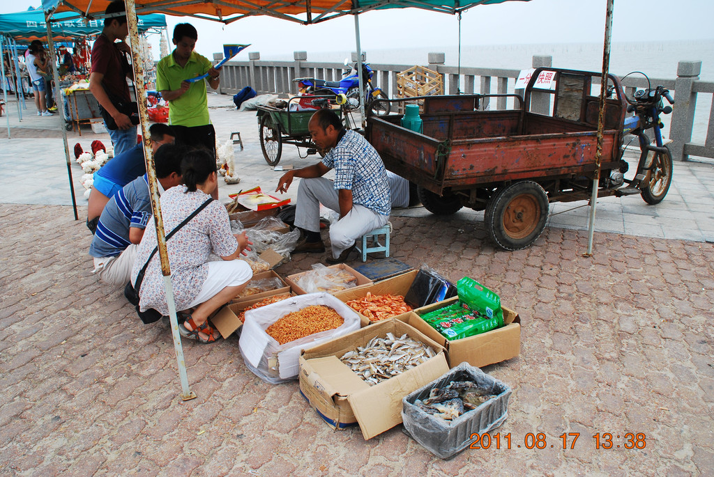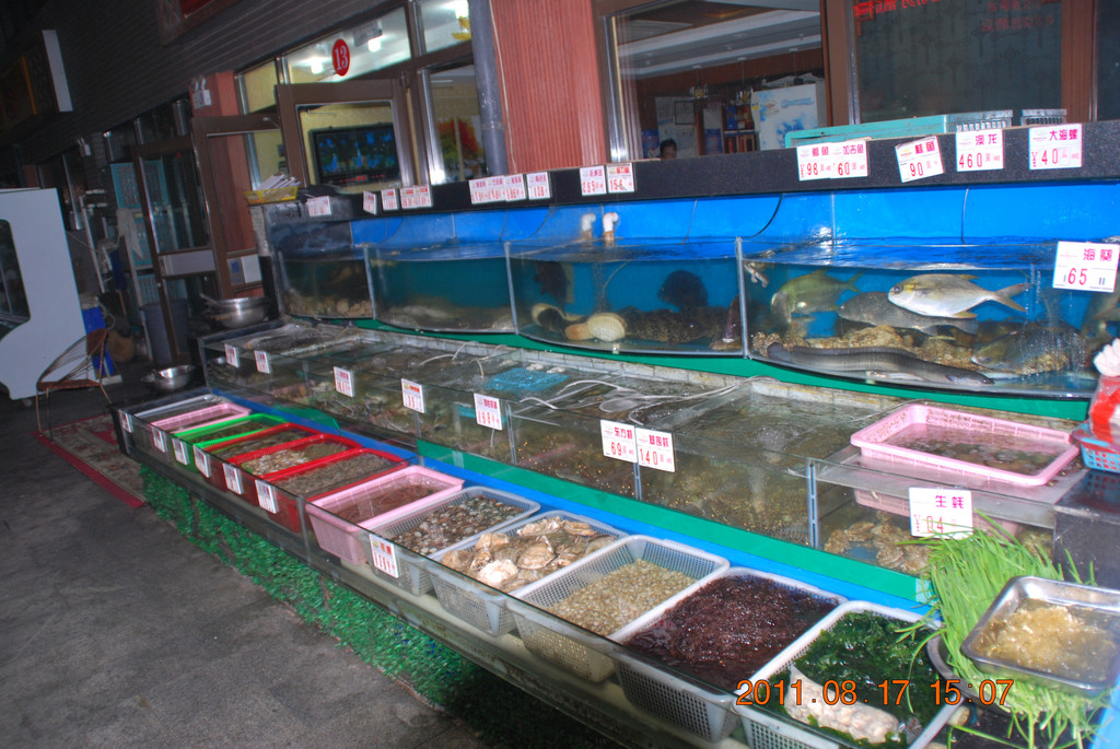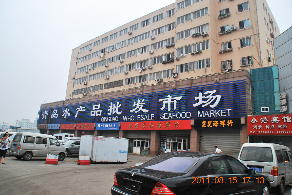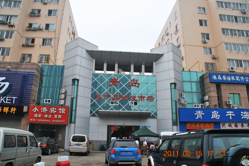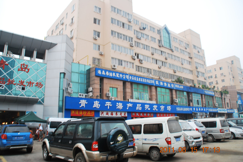 到了青岛难免嘴馋,吃过饭店里的海鲜,还想买海鲜干货带回家。妻子看到活的海鲜很便宜,买了文蛤等带回旅店,用开水壶煮着吃,味道特别鲜美。这是位于小港码头附近的莘县路上的青岛水产品批发市场。