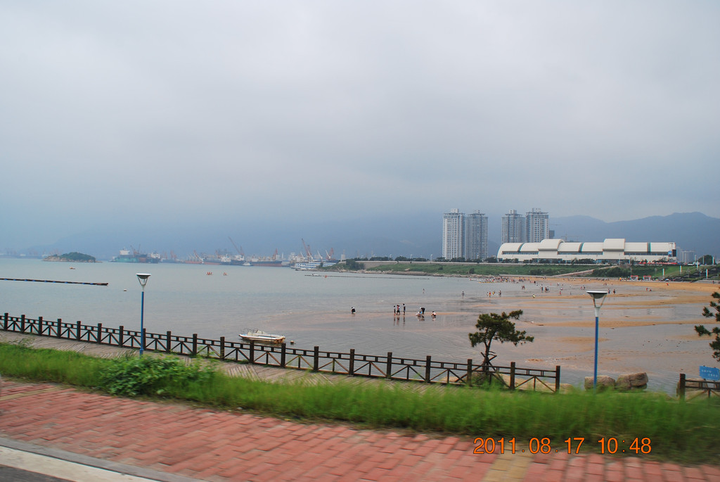 这是驾车走西大堤上连岛前拍摄的“在海一方”景点。据说,是连云港唯一不收费的沙滩。