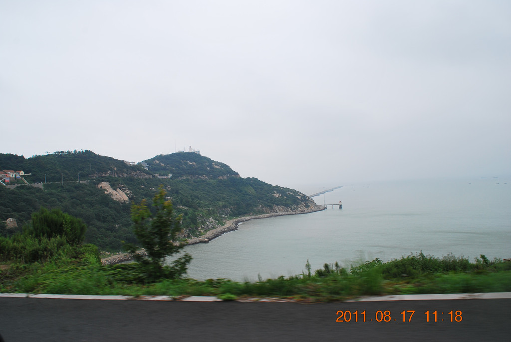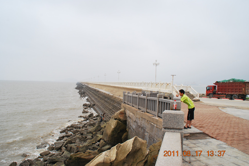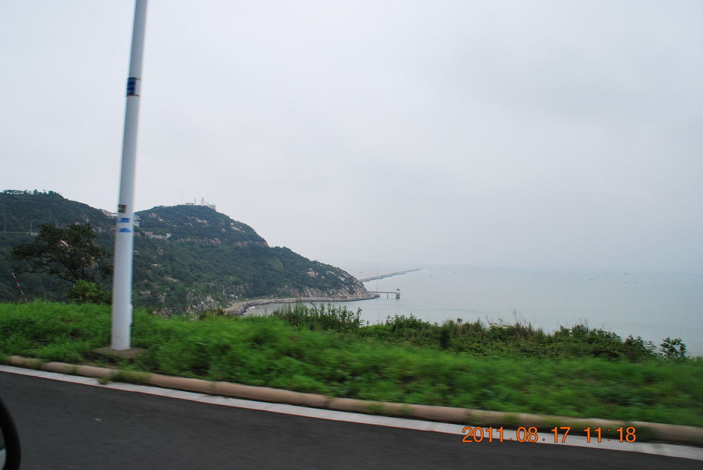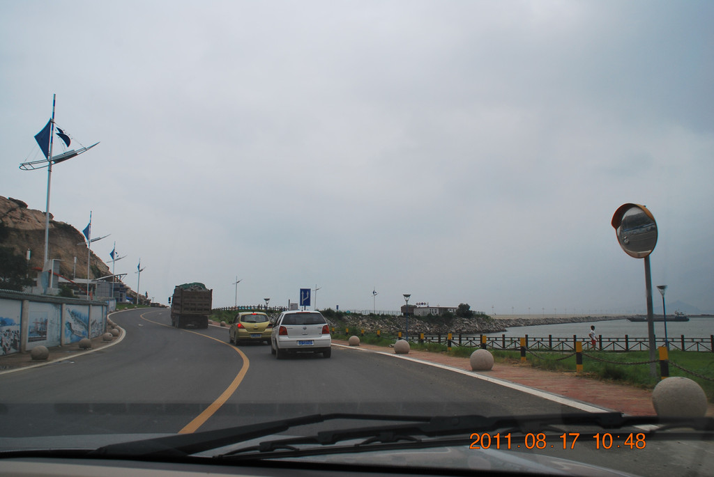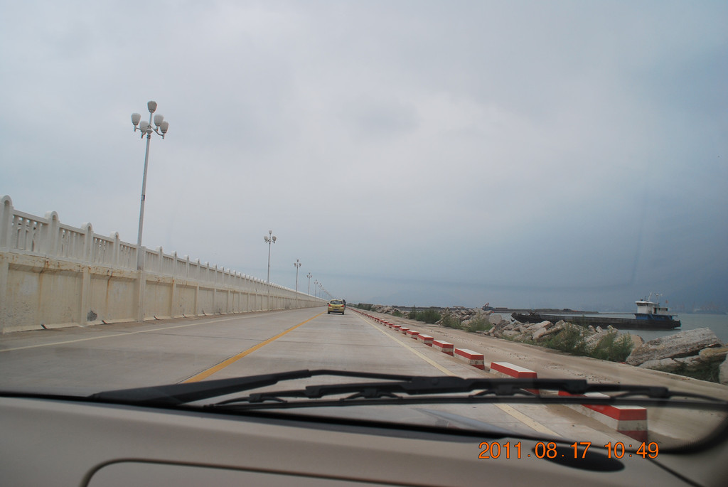 驾车经过西大堤上连岛。连云港西大堤是我国最长的拦海大堤,全长6700米。