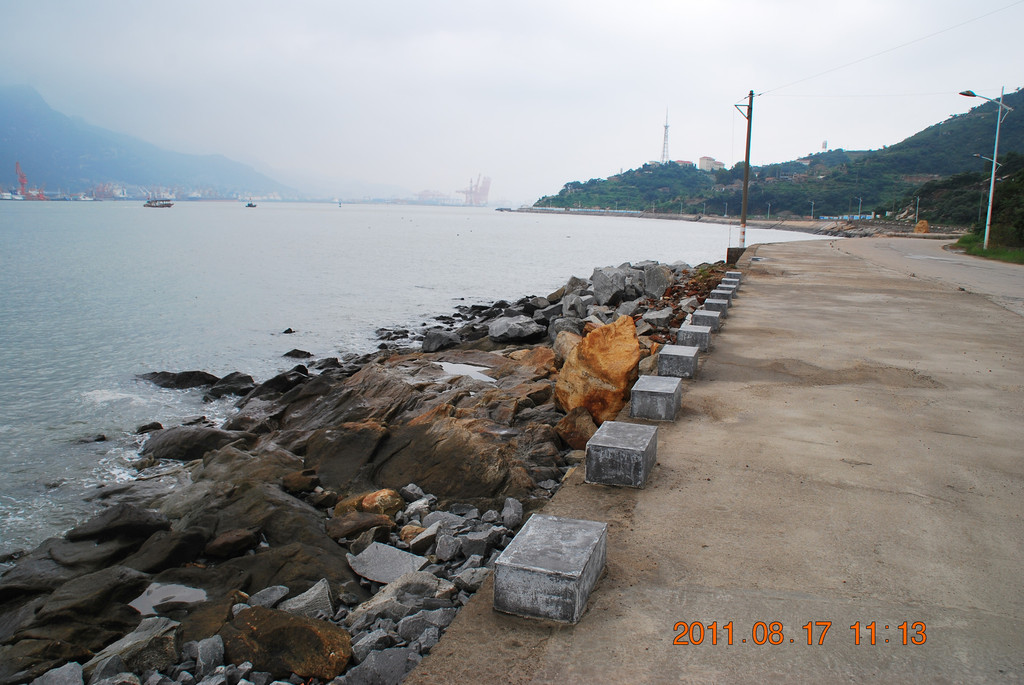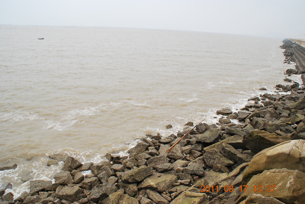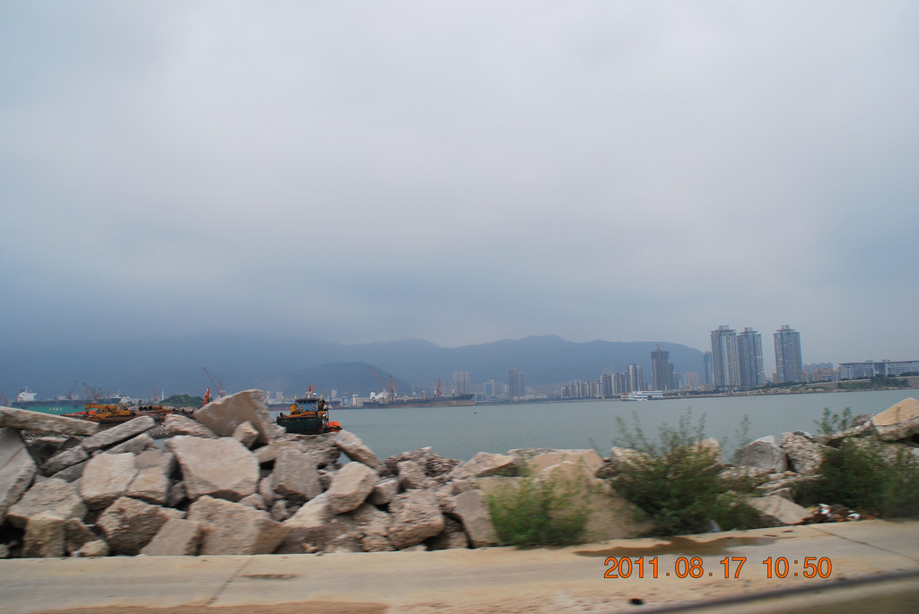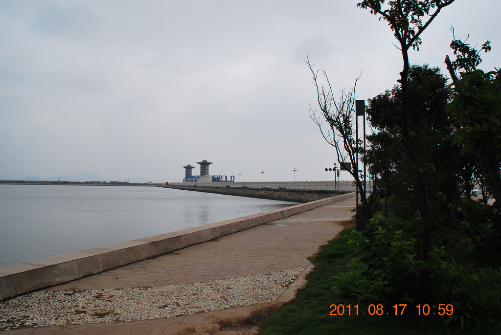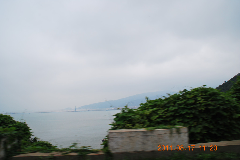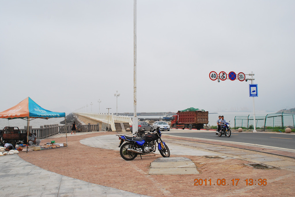 驾车经过西大堤上连岛。连云港西大堤是我国最长的拦海大堤,全长6700米。
