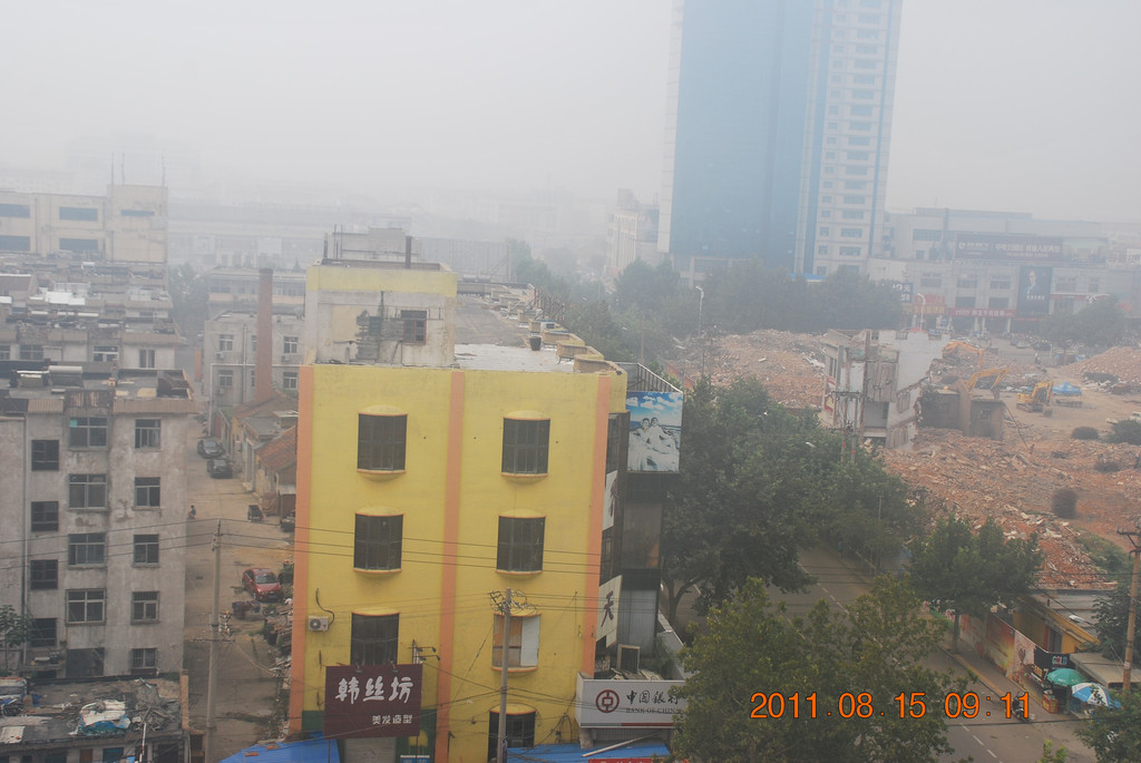 早上出门前,从如家8楼的客房内,拍摄到的胶州市景。