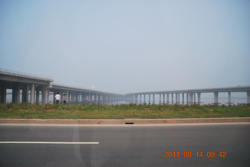 途中看到新建成的胶州湾跨海大桥,该桥与青兰高速连接。