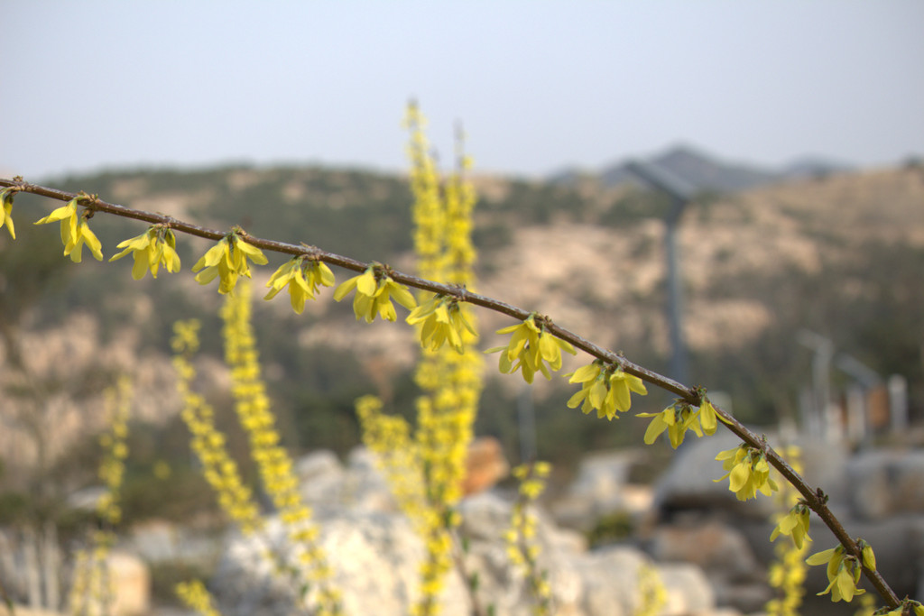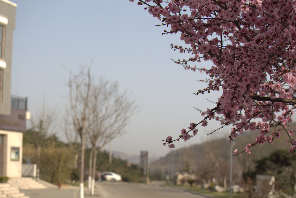驻足在松月湖畔,沿着曲曲折折的山路,春的脚步惊醒了野芳,渐次绽放,红、白、紫、黄、粉…它们开得拥拥挤挤,枝枝挂满。