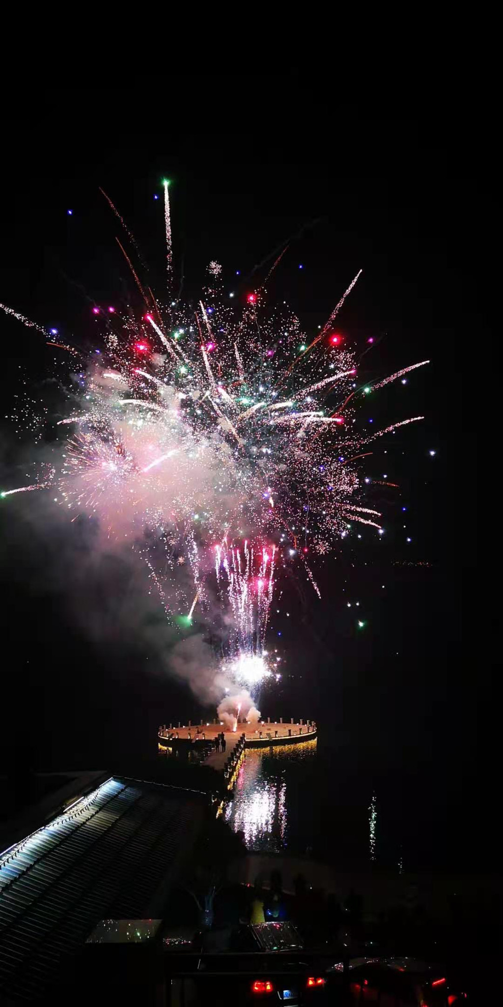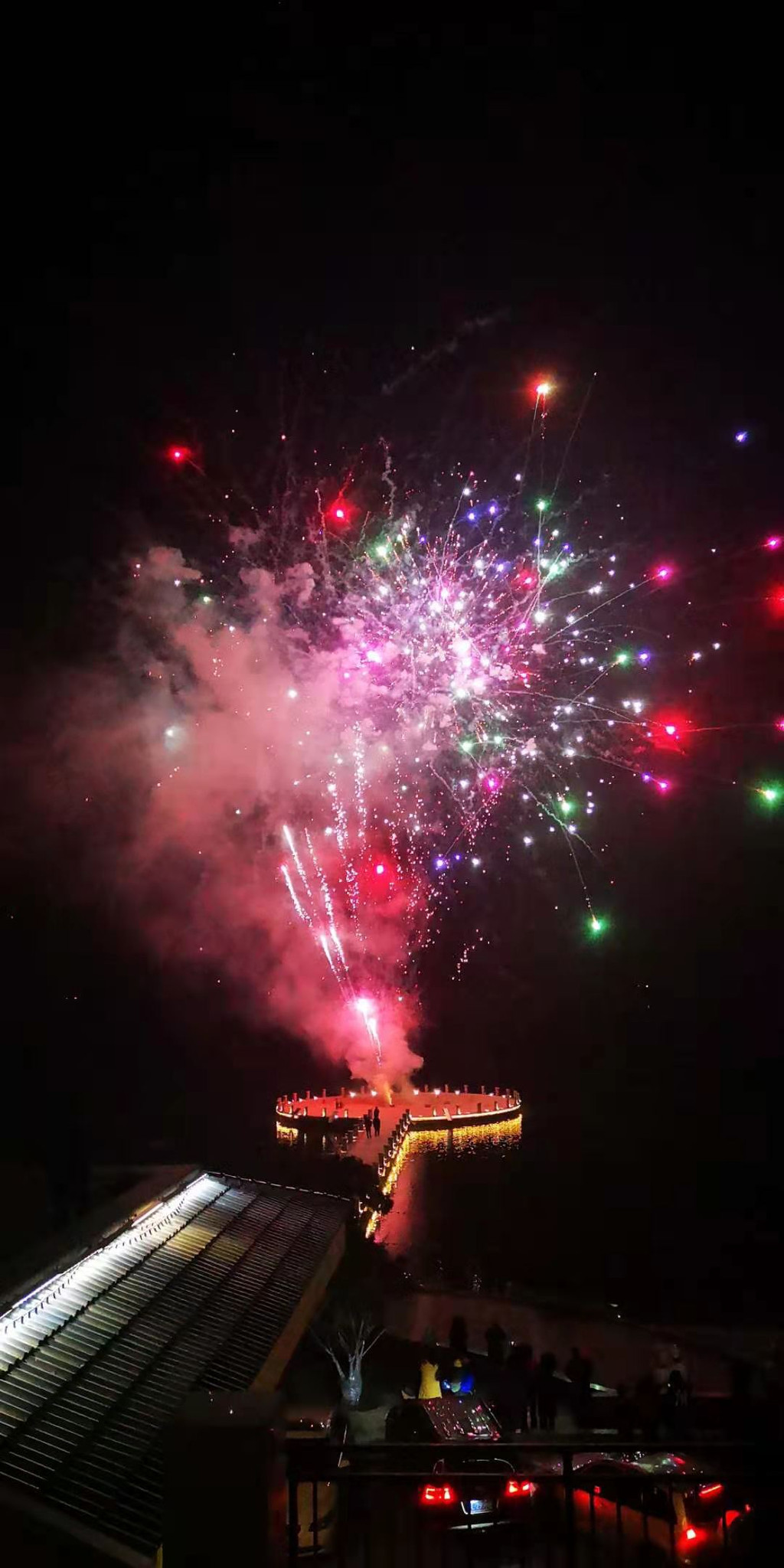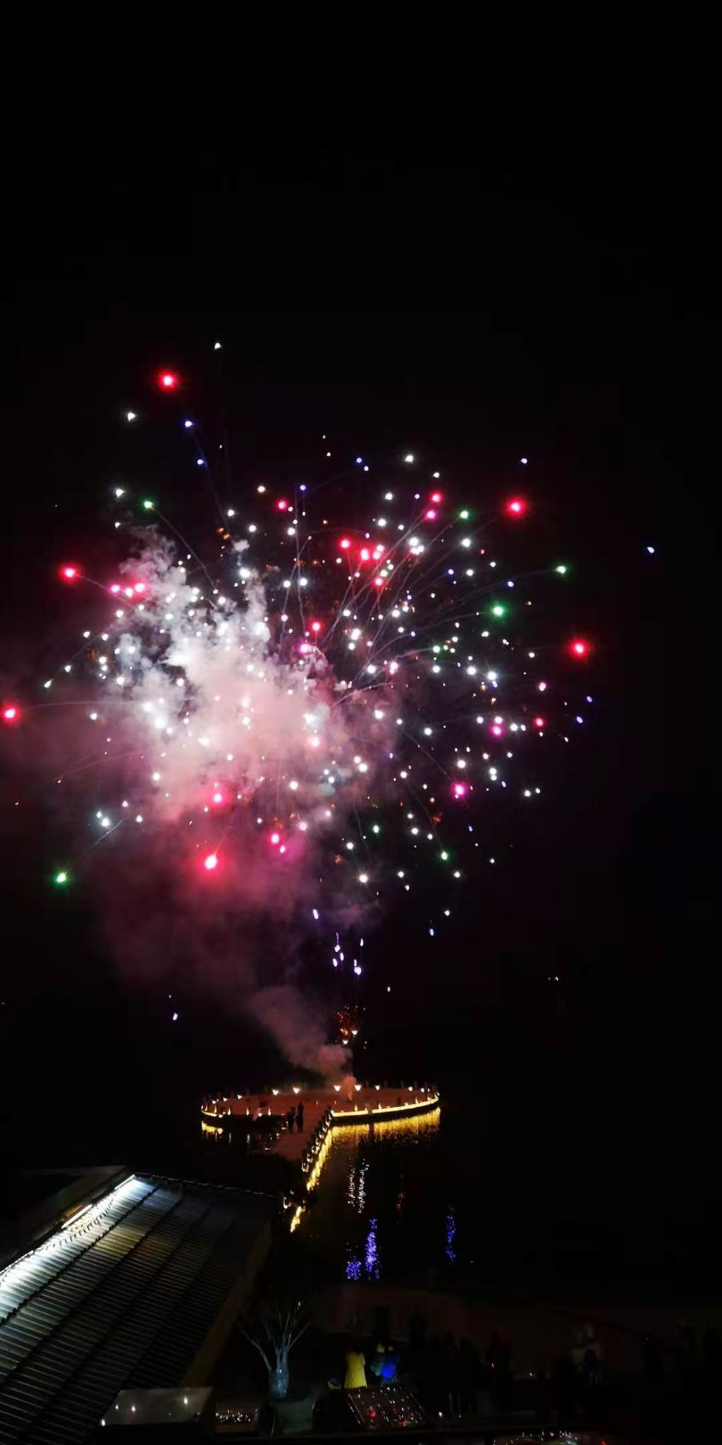 大年初五的晚上,酒店里放烟花观赏到了久违的烟花