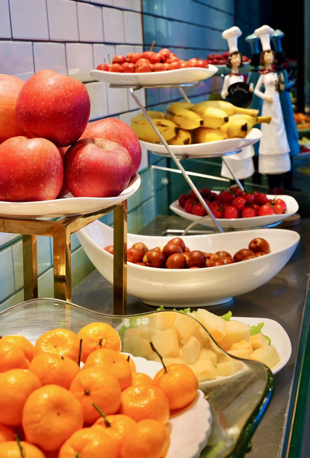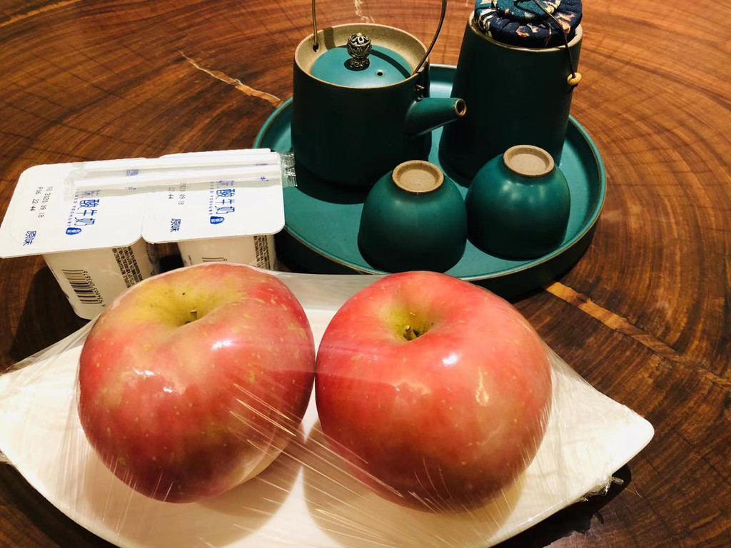 孩子们在这里开心的不得了,我们也买了一点山东煎饼带回家,回到酒店的时候也都已经快十点钟了,中午办理入住的时候,前台非常顺利的,便帮我们办理了入住,需要值得一提的是,要提供行程码,最好还有核酸证明,酒店防护措施做得非常到位,一进门便能闻到淡淡的消毒水的味道,让人觉得很安心,看我们比家人有小朋友还主动为我们赠送了儿童用品,房间里还有欢迎水果酸奶,小家伙们都非常开心,由于我们回来就已经快十点钟了,看到大堂吧,有免费的夜宵,好像是煮的面,我们吃的太饱了,也就没有想用,在大堂坐了一会儿,跟前台聊了聊当地的特色和风土人情,询问了一下景点,我们便上去休息了