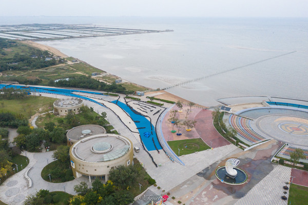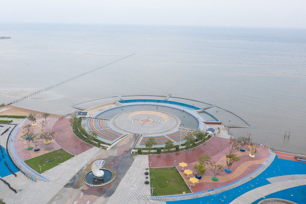 涨潮时礁石大多被海水淹没,落潮时就会露出海面礁石,这个时候的礁石上就会布满各种贝类和海藻,提前查好涨潮的时间,就会看见那汹涌而来的浪头升腾起数米高,打在木栈道上,让人不敢靠近。广场是观海听涛、凭风赏帆的绝佳平台,涨潮时海浪最高可达15米。
