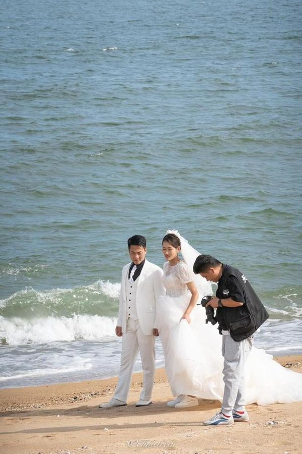 这里的海边美得吸引了很多人在这里拍婚纱照,沿着沙滩随便走一走就能看到一对对穿着婚纱的夫妻们。