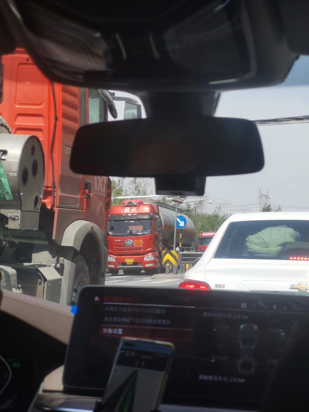 大车占着超车道,后面的车着急也没用。