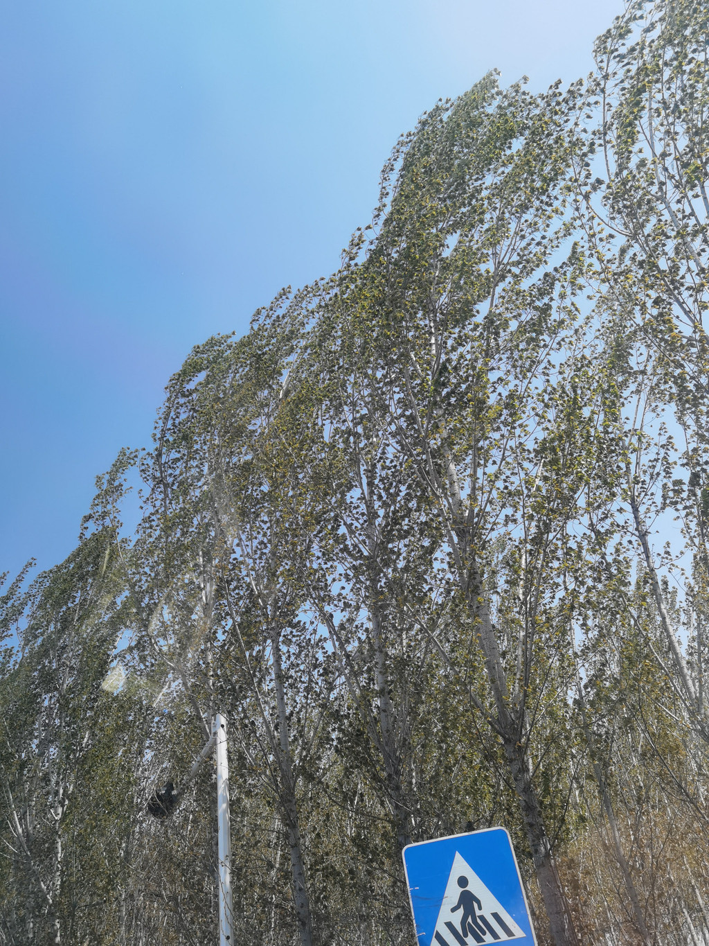 路边的杨树,看来树龄不长,长出新的叶子,在风中摇曳