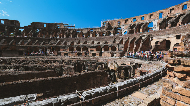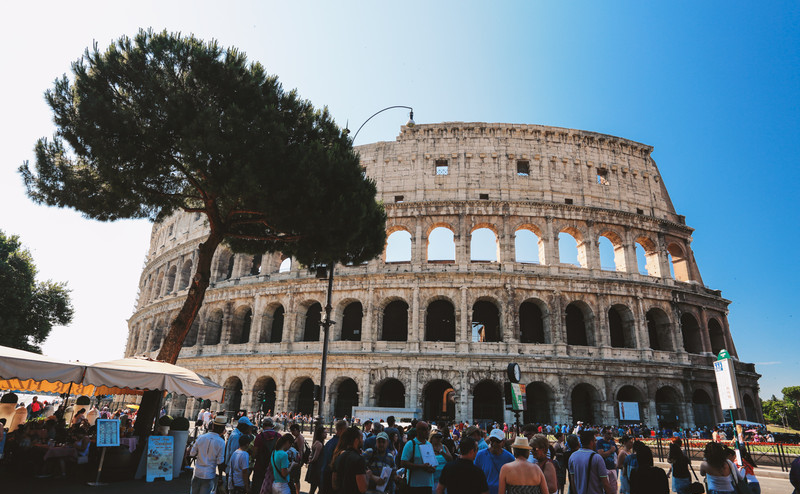 一早起来就感受到热浪来袭,不过天空有了一点点蓝天白云,热就热点吧。吃过早饭便早早来到斗兽场,然而已排起了长队。这时Roma Pass的用处便来了,走旁边的专用通道,不用排队直接就进去了。