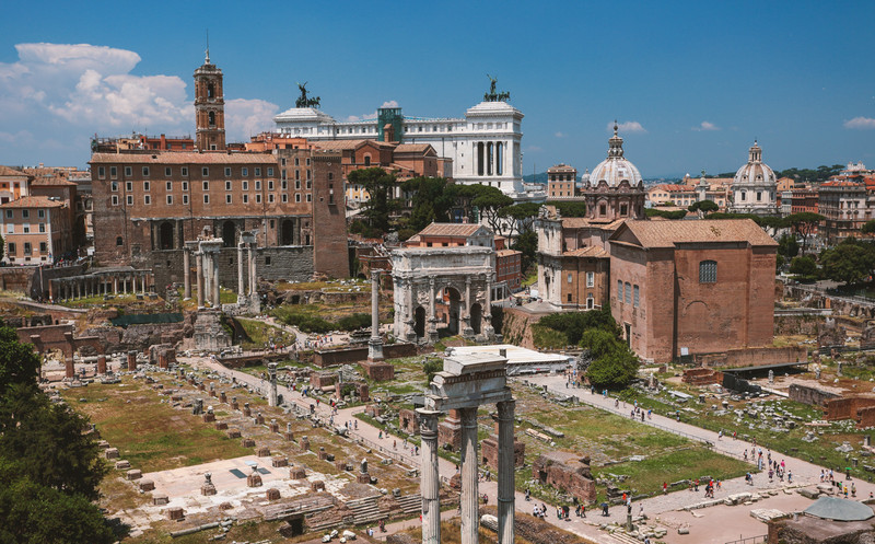 古罗马遗址,有Roma Pass也要排队,队伍很长但速度很快。遗址是古罗马时代的市中心,里面有各种凯旋门、神庙、元老院等,规模非常庞大。就他的规模来说游客较少,显得安静而神秘。我们也是走马观花的随便看看就走了,因为这种阳光直晒的大夏天,废墟里没什么遮挡,一路暴晒加之又累又饿实在无力招架。遗址里虽然集结了无数景点,但就感官来说是千篇一律的废墟,更适合对罗马历史感兴趣拿着解说器慢慢欣赏的人。所以如果你想深度游玩遗址,最好是避开夏日午后,要不实在是太虐了。