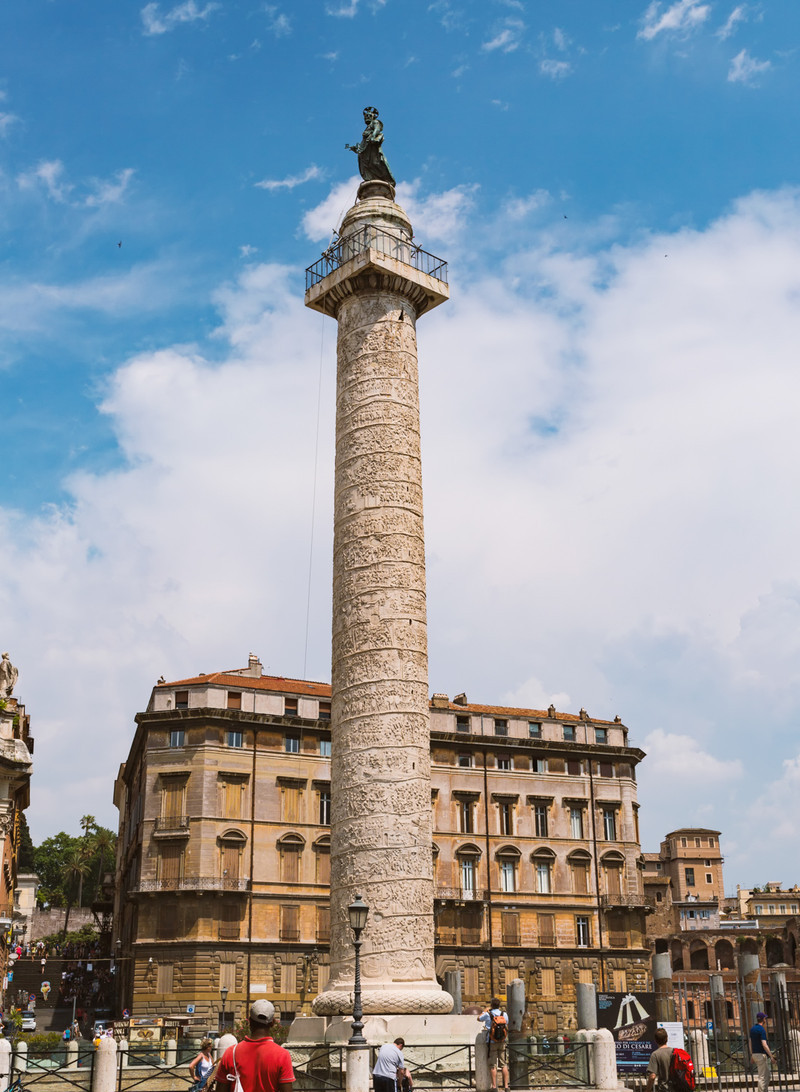 图拉真柱就立在威尼斯广场旁的一个拐角,与广场一路之隔,很隐蔽。这时天上又飘起了雨,赶紧在广场边找了家餐厅吃午饭喝Beer。说实话还挺感谢这场雨的,让40多度的烧烤天稍微清凉了点,不禁感叹夏日的罗马一点都不假日,顶着烈日在漫无边际的废墟里游览一点都不浪漫!