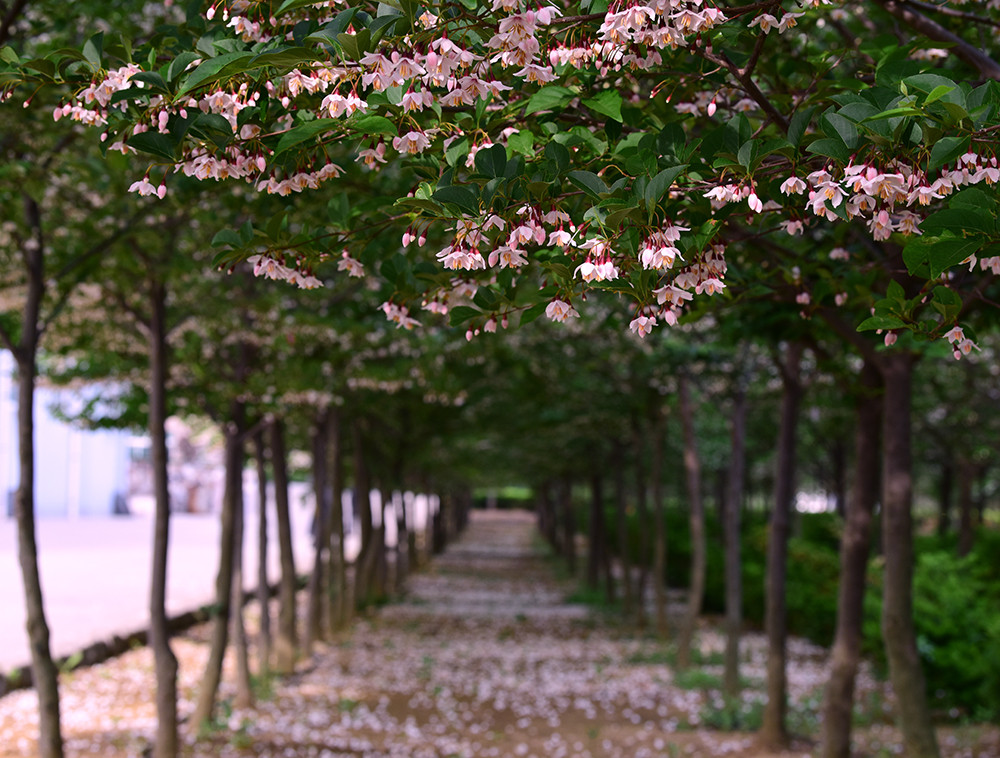 沿着小园曲径,一株株玉玲树沿路生长,由远及近地延伸开来,洁白的花朵,你挨着我,我挨着你。微风吹过,花枝渐次摇摆,海面波涛也不过如此,这才是名副其实的花海,连落在地上的花影都散发着迷人的姿态。