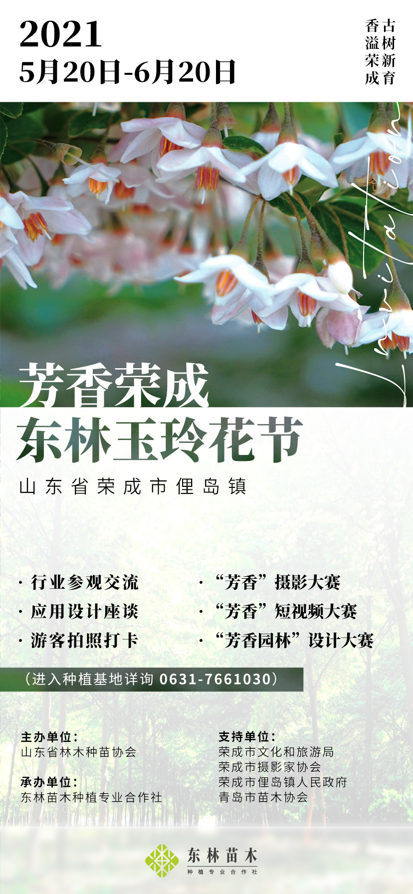 5月20日至6月20日,“芳香荣成·东林玉玲花节”即将在俚岛镇举行,期间还将举办花期参观交流活动,“芳香”摄影大赛及短视频大赛也将同期举行。在这玉玲花盛开的季节,我们诚挚邀请您到俚岛共赴一场初夏的盛宴,一起感受这如梦如幻的“花花世界”!