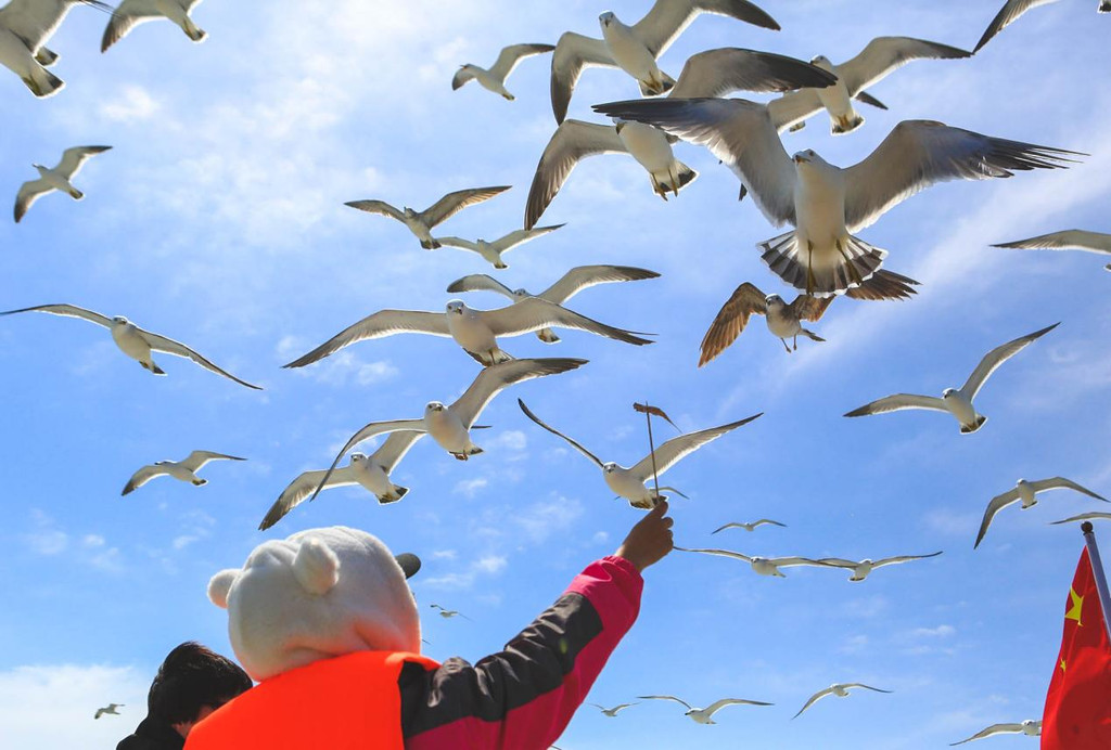 之后我们去了海驴岛,在沙滩上玩了一会,然后乘船环游,这座岛就算是远看也不能挡住它的美,岛上各种植物花草竞相开放。纯白的海鸟或在上空飞翔,或在地面嬉戏,似真似幻,如同仙岛。我们还一起喂了海鸥,孩子玩的很开心。