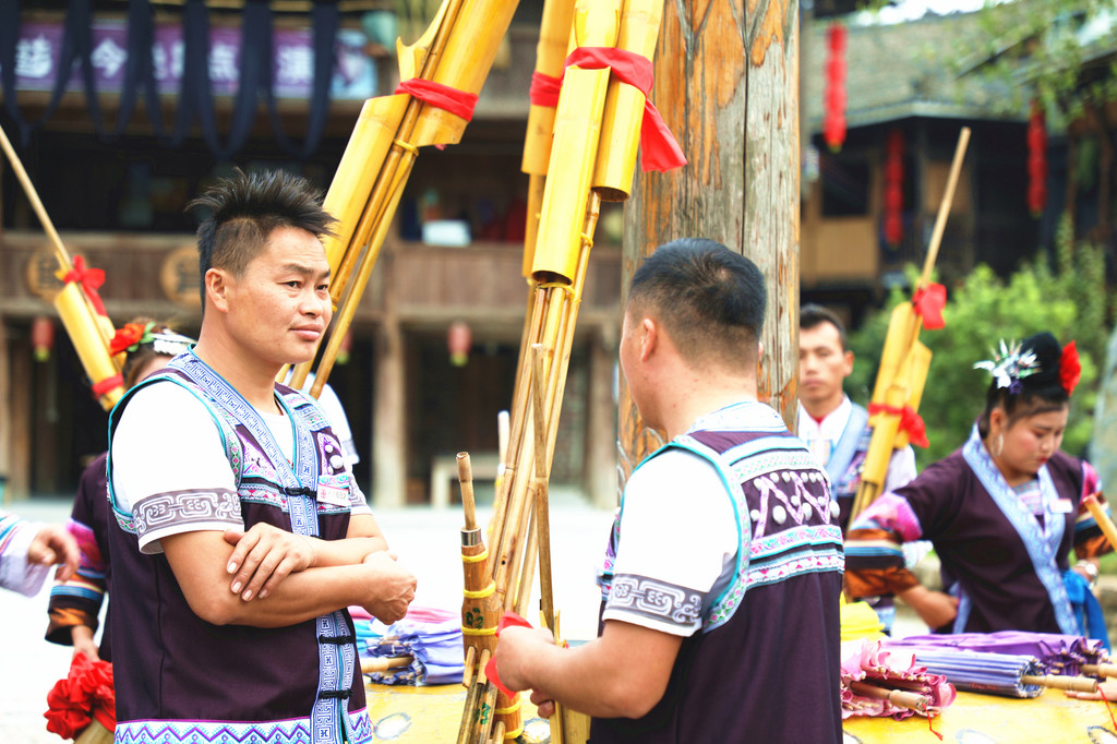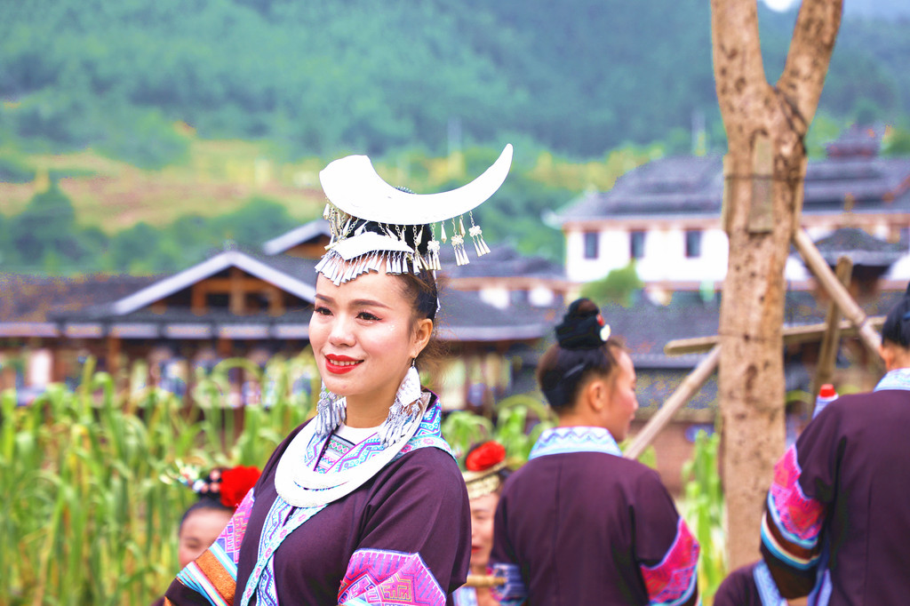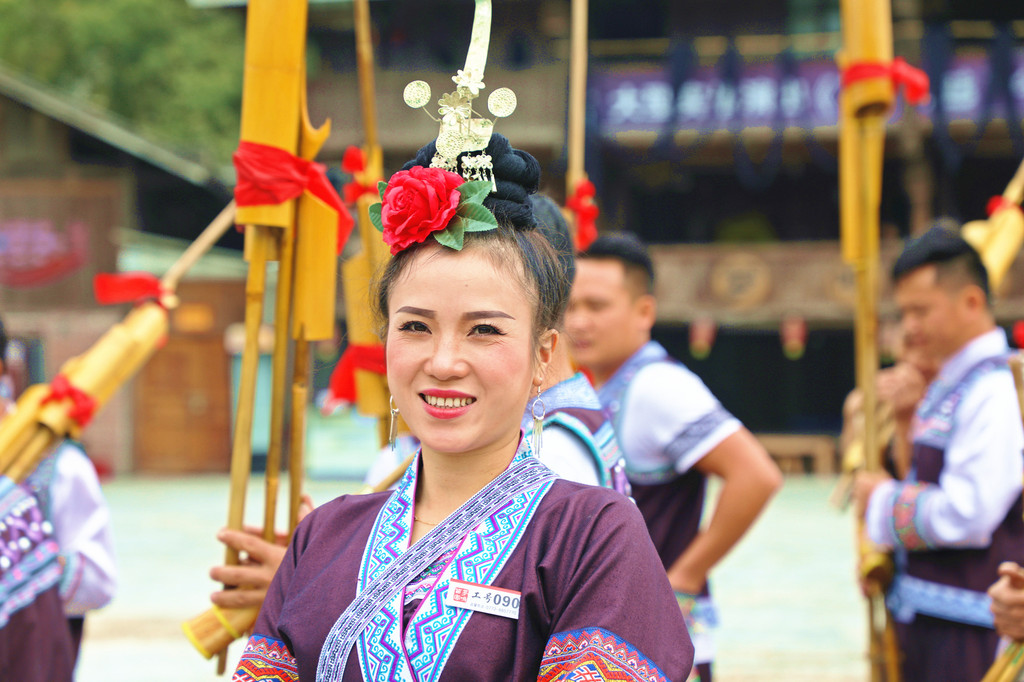 苗族姑娘,不但能歌善舞,芦笙吹的也不含糊。说起苗族,让人们首先想到的是苗族姑娘穿着色彩鲜艳的漂亮服饰和那些精美的银饰。在梦呜苗寨,有一群快乐的苗族姑娘,每天穿着属于她们的民族服饰,在苗寨里迎接着来自四面八方的游客。她们把游客看作是远方最尊贵的客人。