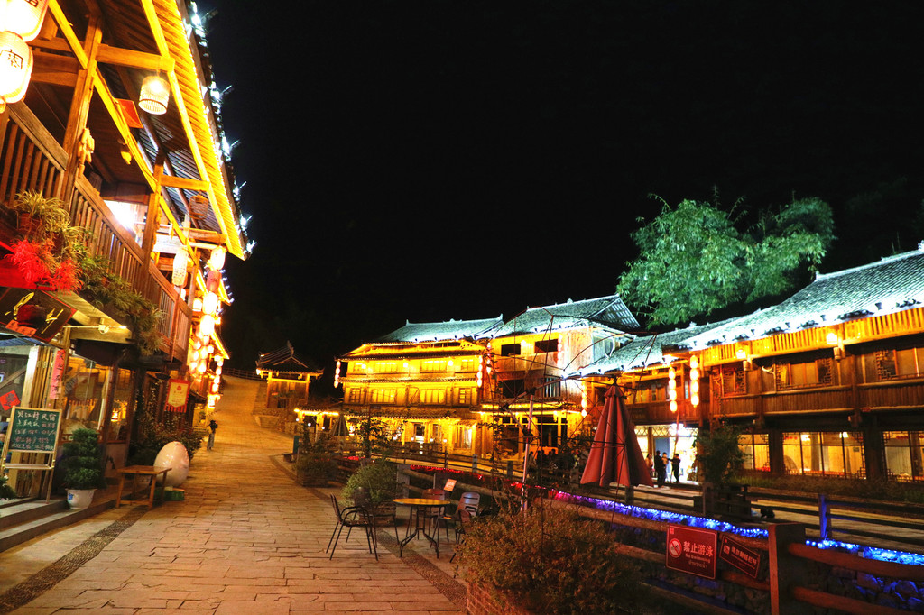 夜幕下的梦呜苗寨,美的如梦如幻。灯火阑珊,绚烂的似火一样跳跃,点燃了夜色让我们徜徉在梦呜苗寨。眼望苗寨灯火珊阑,火树银花、流光溢彩,摇曳的灯火如凤冠霞帔,如此让人沉醉其中。