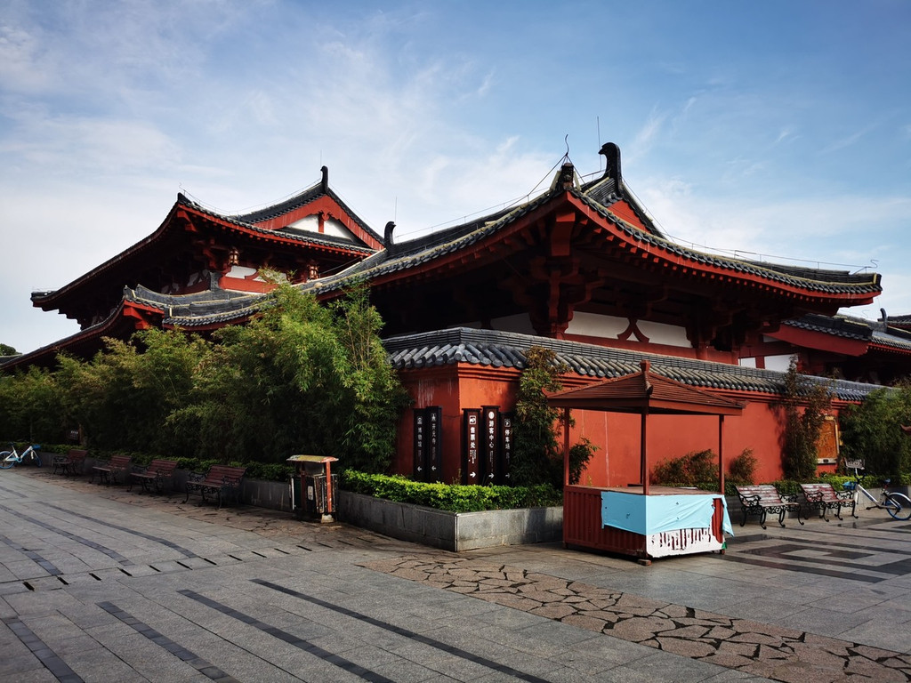在旧址按原布局重建的开元寺,采用仿古建筑形式进行建设,依照 中国 古代寺庙建筑规划思想沿中轴线展开,以山门(天王殿)、大雄宝殿、后殿(万佛楼)为中轴线,法堂(藏书阁)、钟鼓楼、斋堂、僧寮、居士楼布局两边,体现七堂珈蓝的寺庙禅林特征。