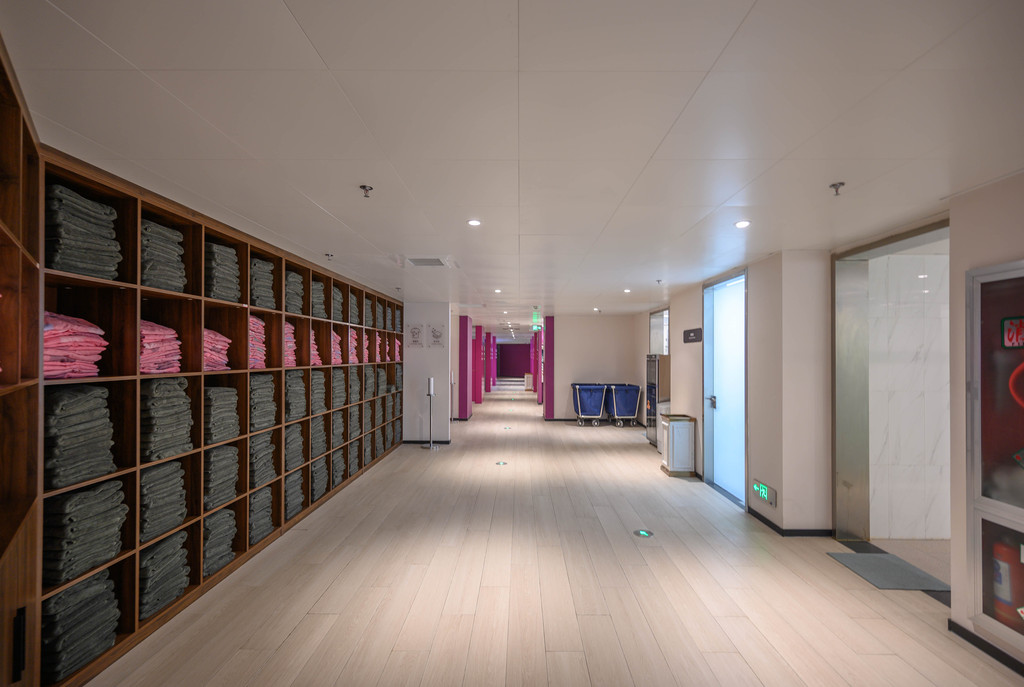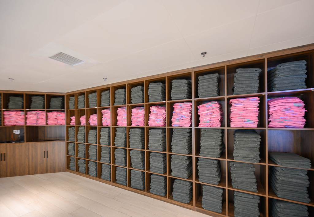 更衣室整洁又宽敞,这是女更衣室,摆放整齐,看着就舒服。