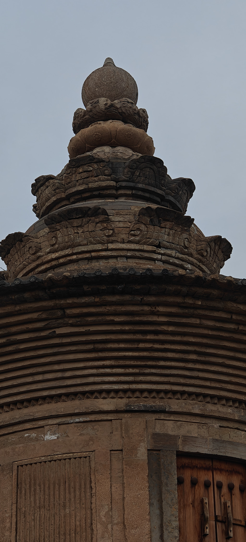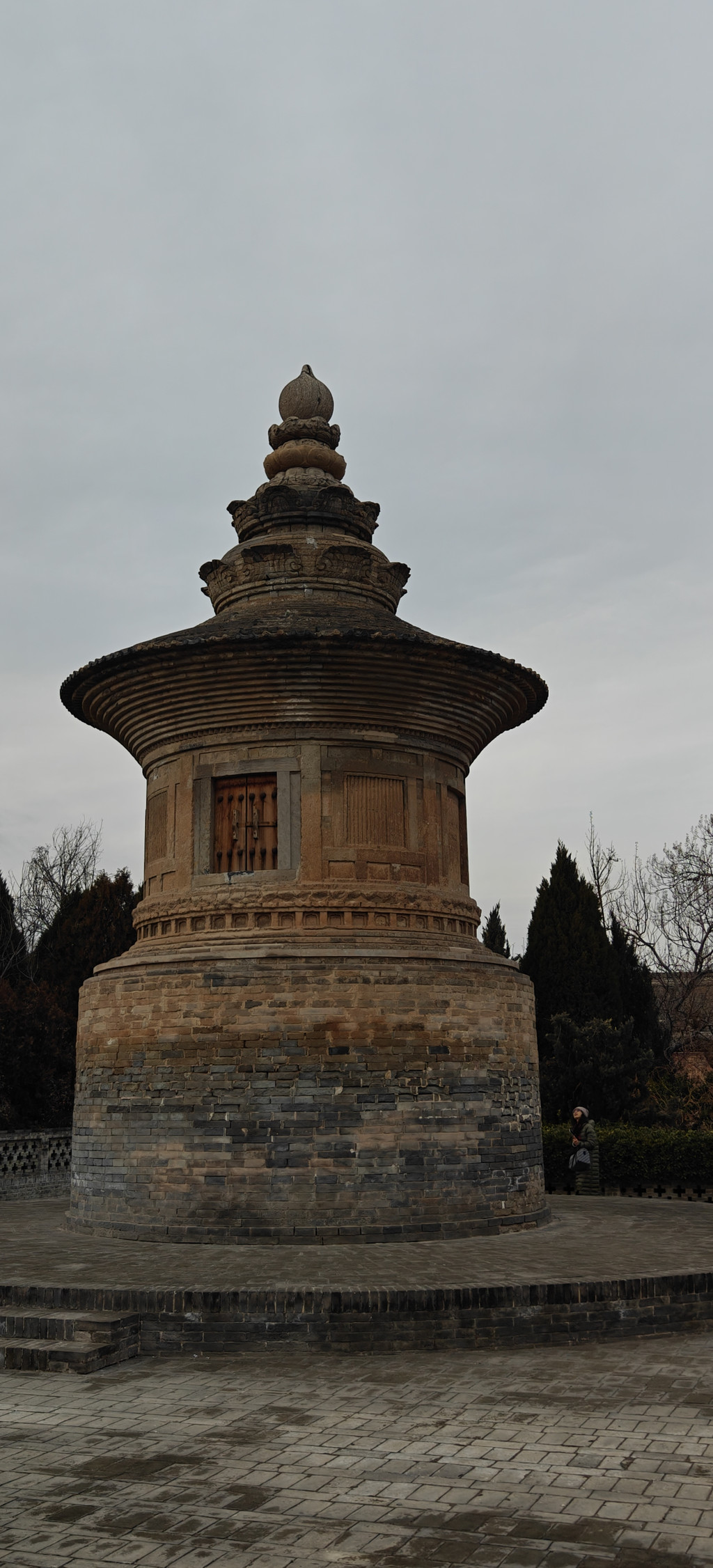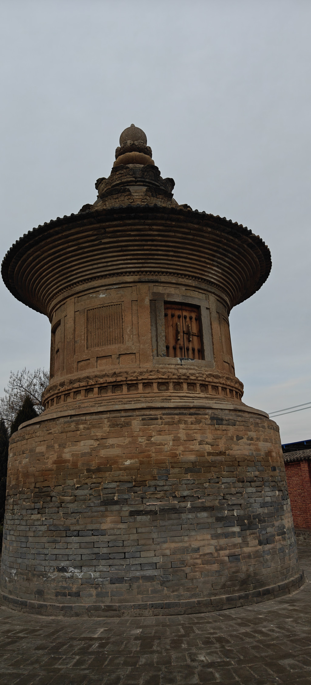 回到运城,却是满天晚霞,天气好得不得了。于是我们趁机多走了一个泛舟禅师塔。这是唐代圆塔的孤例,原本它是报国寺内,为纪念泛舟禅师而兴建的塔,但千年后,塔在寺逝。这位泛舟禅师出生李唐皇家,是高宗李治的孙子。自幼聪慧,好佛事,20岁出家修行,能诗善画。尤其所画罗汉,他的《十六应真像》成了后世临摹及雕塑罗汉佛像的范本,也就是说,我们今天在全国各地寺院见到唐代以后的罗汉佛像,大都源自于泛舟禅师的创作。