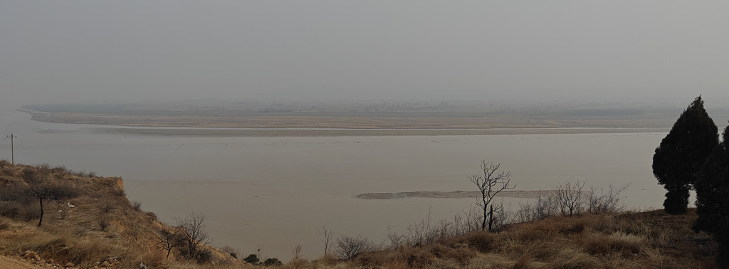 我们是经过另一个渡口--大禹渡,司机大哥停了下来,让女儿见识一下黄河的颜色。这里的河面宽广,水流缓慢,对面河南是一马平川的平原。