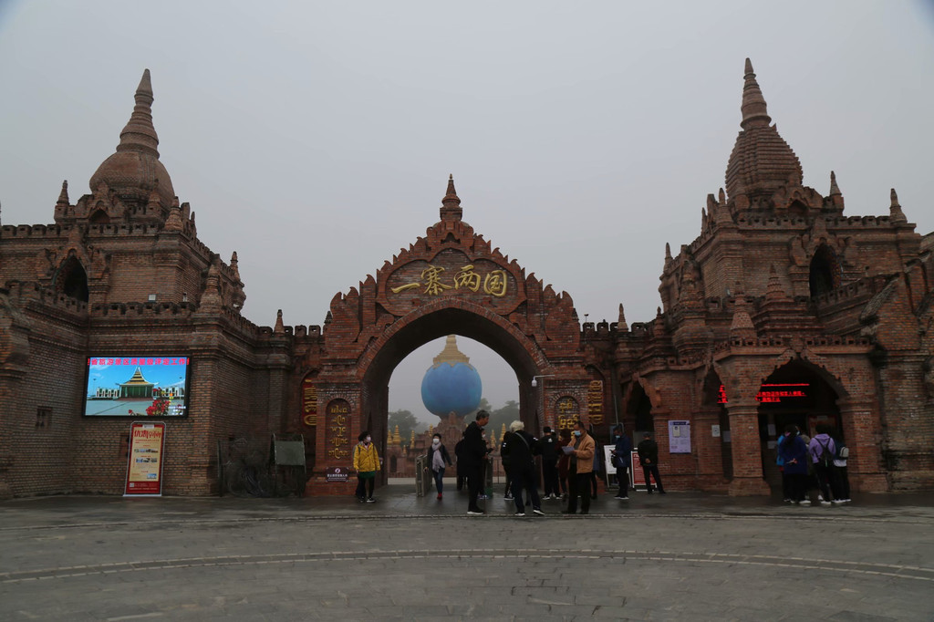 需要买票入园的,是在银井一侧开发的一寨两国旅游项目。按照傣式建筑风格,建有大金塔、螺丝佛塔、芒秀佛塔、蒲甘塔群和泼水广场,构筑一屋两国、一井两国、一石两国、一桥跨两国和福临三界的地理奇观。中缅玉石国界线用5068枚玉石心铺成,用于纪念1950年6月8日中缅建交的重要时间,黄色为中国,代表博大和包容,白色为缅甸,代表平纯和爱好,全长423米,为全世界最贵的国界线。
