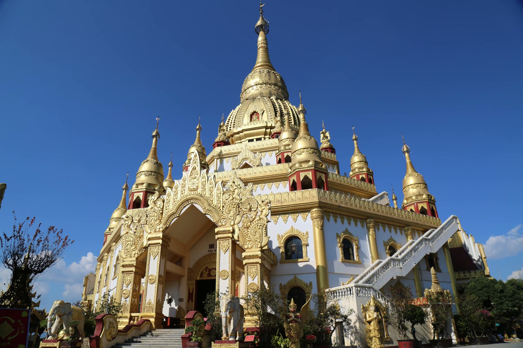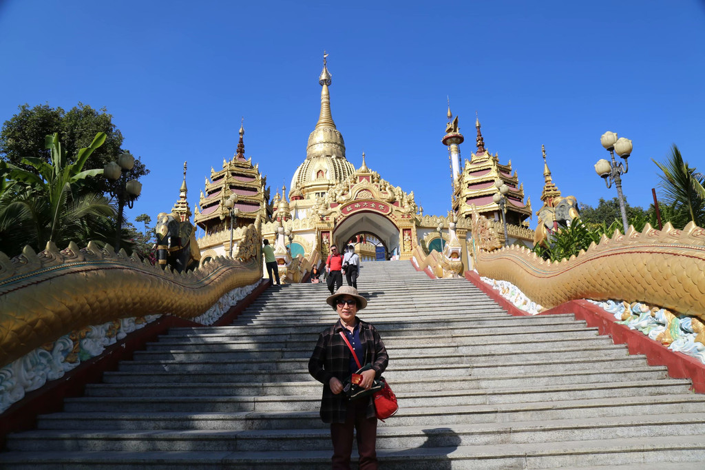 11月29日上午,二和师傅从200公里外的丽江开车来大理时,已是上午9点钟。我们6位游客上完车即出发,从大理到芒市不到400公里,开了近5个小时。下午2点甫一抵达,立即参观树包塔和勐焕大金塔,再行车100多公里,前往瑞丽的独树成林,30日上午继续游览姐告口岸和一寨两国景观。