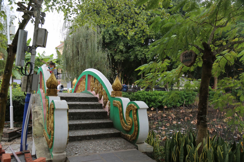 沿着中缅玉石国界线,跨过两国一桥,漫步于两国一寨,感受两国一井的景致,宁静而祥和。所有的游客,几乎毫无例外的都会来到71号界碑,用相机和手机记录这一时刻。靠近界碑的一荡两国秋千,许多人排队等候,坐上秋千,轻轻一荡,感受瞬间出国的便捷。在傣族民居里,我们还偶遇了居住和工作于我国的缅甸人,他们用汉语交流时,没有任何客居和不适的感觉。感谢佛国护经者,他们乘“凤鸟”远道而来,为边寨村民看护佛经,播撒中缅两国边境的和谐与安宁。