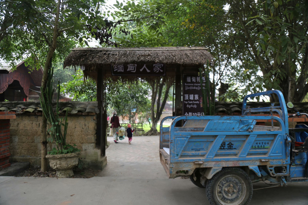 口岸附近有免税店和不少翡翠店铺,有低价旅行团因为购物而在游、导之间发生激烈的争吵。我们团价高人少,没有购物安排,不足以配导游,乐的轻松惬意。游完口岸,再徒步姐告大桥,桥两侧铁栅栏分隔,桥下正在施工,想拍几张瑞丽江的照片,未获允许后,就直接前往瑞丽西南的一寨两国景点,参观典型的“一个寨子两个国家”地理奇观。