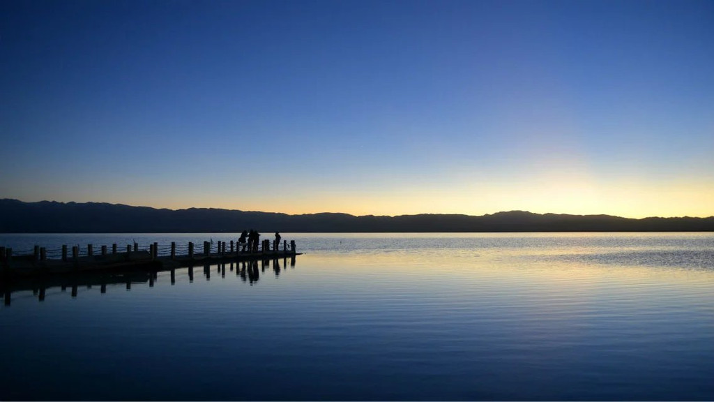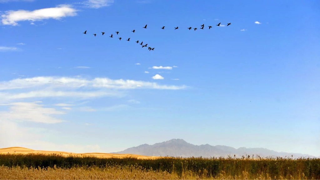 西海瑶池碧波荡,鹰击长空任飞翔。茶卡落日星辉熠,金子海边雁成行。