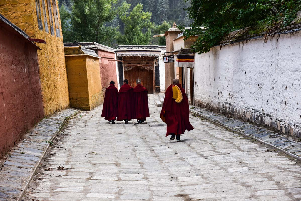 下一站,郎木寺。郎木寺其实是两座寺庙的统称,位于在郎木寺镇,镇以寺名。白龙江穿镇而过,其中江北的赛赤寺属于甘肃碌曲县,又叫“达仓郎木赛赤寺”,江南是格尔底寺,属于四川若尔盖县,又叫“达仓郎木格尔底寺”,两座寺庙均属藏传佛教格鲁派寺庙。到达时已近黄昏,找到预定的民宿住下,先去四川郎木寺看看