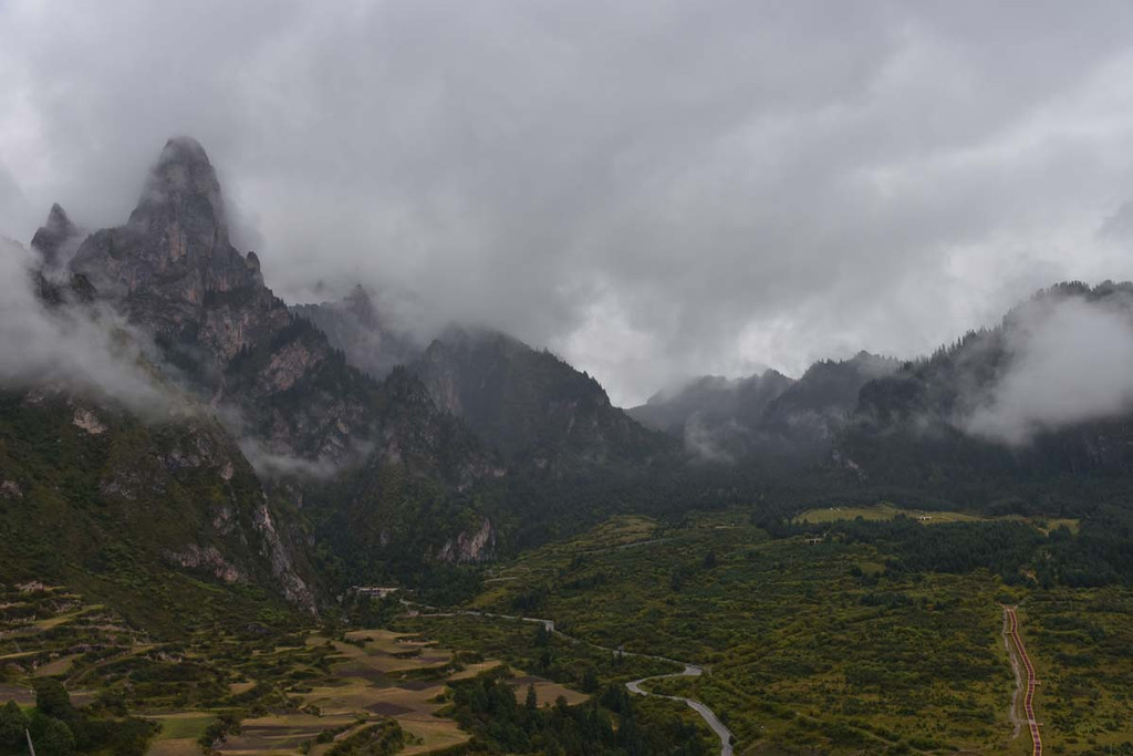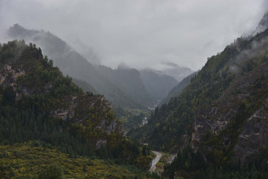 D4错过了郎木寺,后面的行程还要继续,看看天气能否转好,出发去扎尕那。扎尕那近两年比较火,我也想去看看。从郎木寺到扎尕那不远,但一路的风景很好,从草原一下子过渡到到高山峡谷,视觉冲击力很大,可惜要开车,路旁不变停车就没有拍照了。到了扎尕那,只见云雾缭绕,什么也看不到呀,偶尔露出的山体还是很让人着迷,如果是晴天,那应该是很美的。