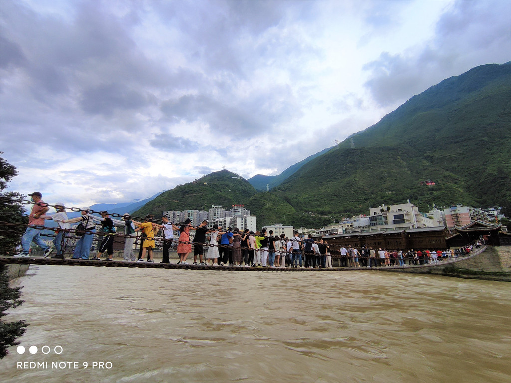 排队过铁索桥的各地游客实在是太多了,不想排队,在桥边看看也很开心~