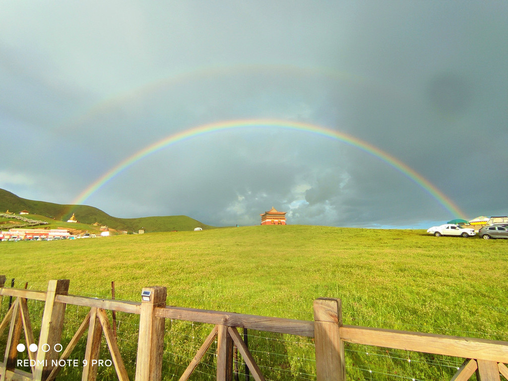 这景色实在太神奇了,一面是彩虹,另一面是蓝天白云: