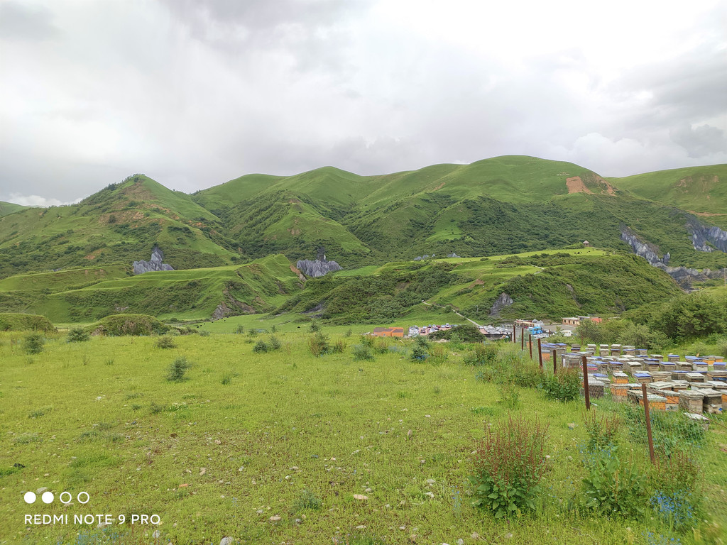 可以拍摄到无垠的草甸,曲折的溪流,山坡上大片觅食的牛羊,散落的藏族村寨。