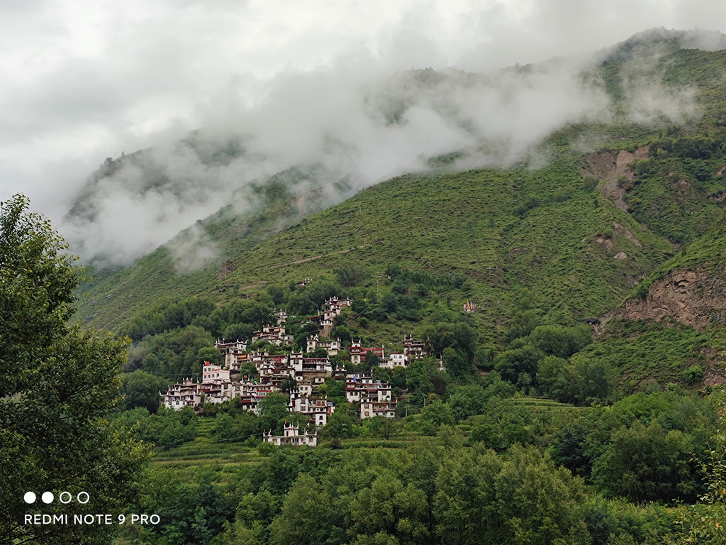 早晨,云雾缭绕的藏寨非常漂亮,照片不太能捕捉到实际的美感,山下就是涛涛不绝的大渡河水~