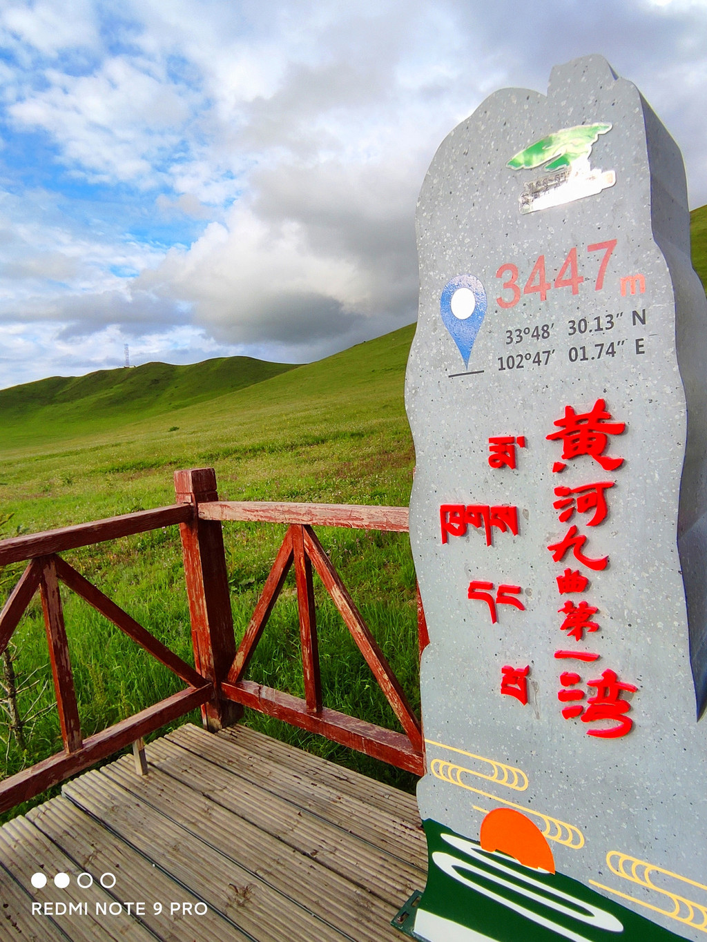 黄河自青藏高原沿西北至东南方向蜿蜒徘徊于川、甘、青三省交扩处,又折向西北回流甘、青两省,呈U型湾,此即著名的九曲黄河第一湾!黄河在这里展现出柔美的一面、一个“广”字在这里展现的淋漓尽致。