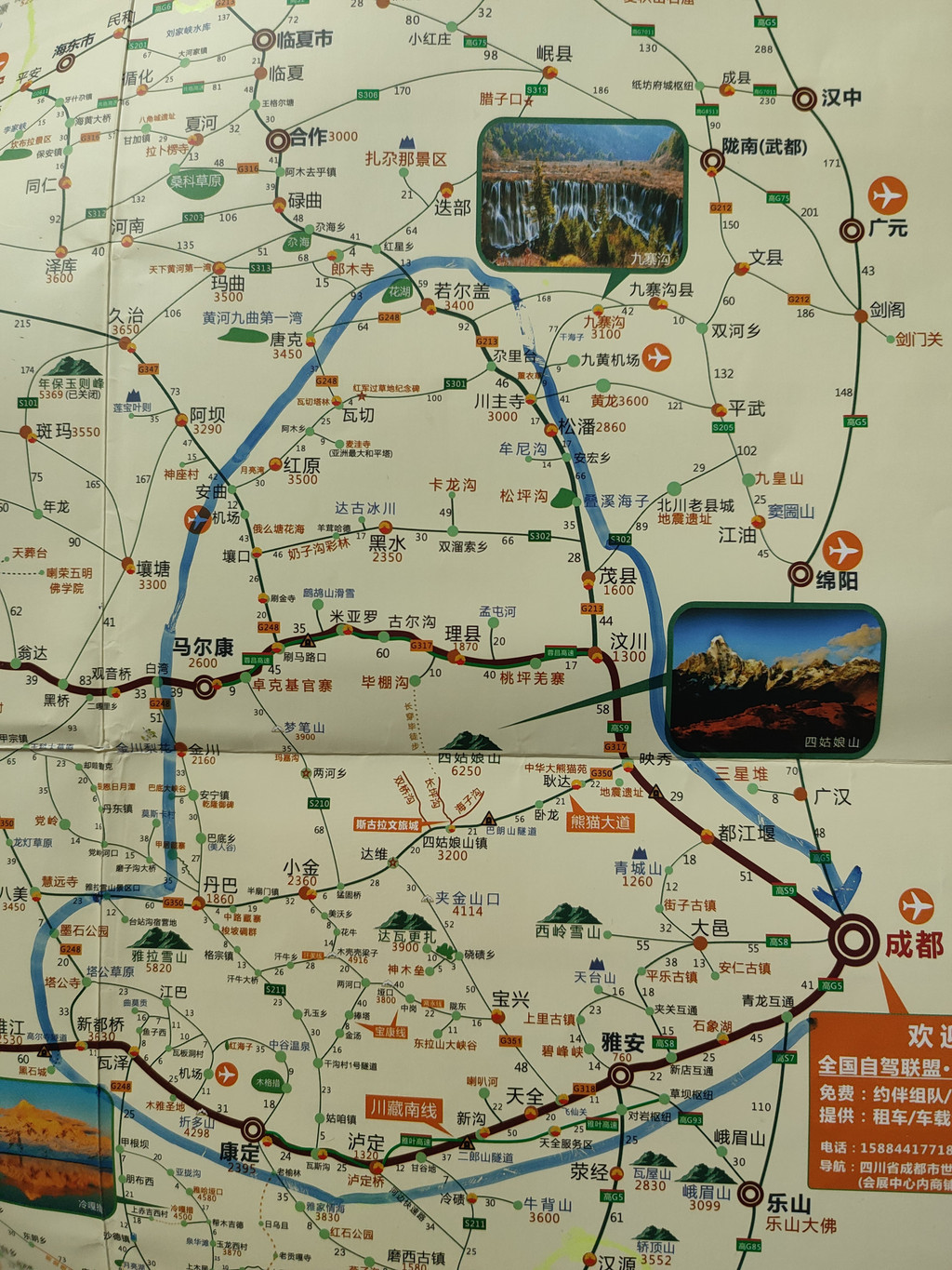 返回线路:若尔盖-松潘-茂县-汶川-都江堰-成都。