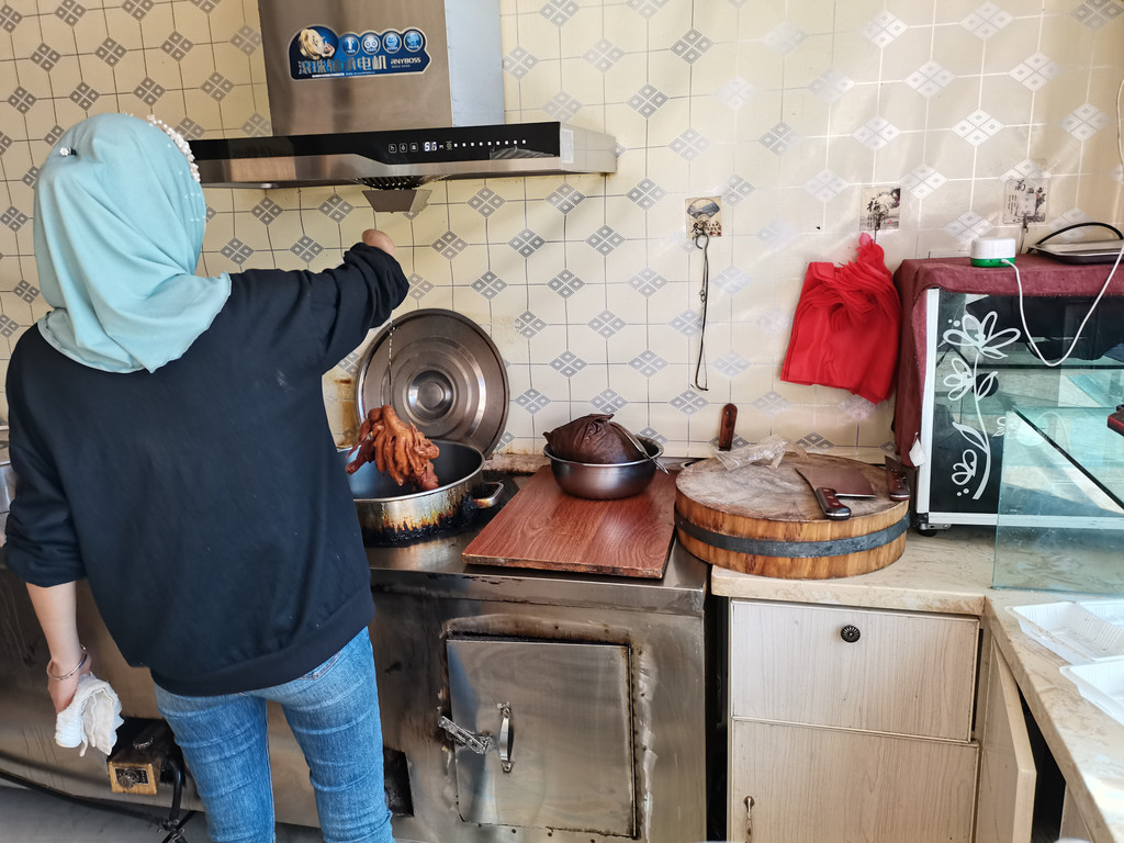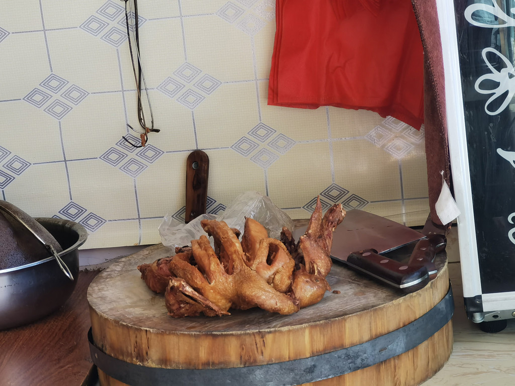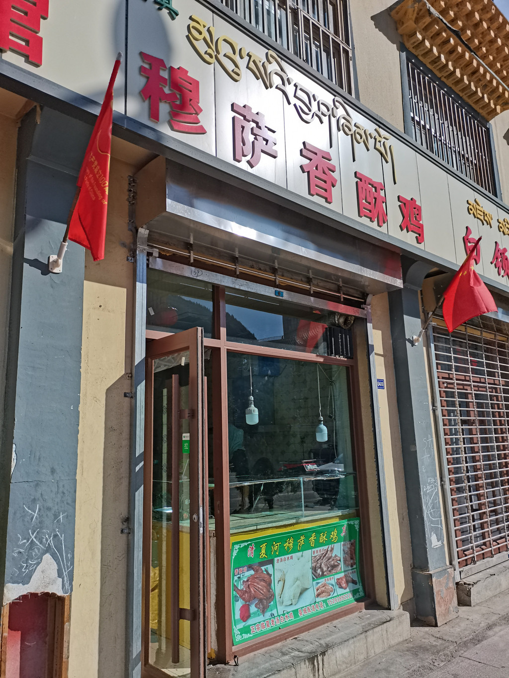 第二天2021.7.21,重点是游拉卜楞寺,昨晚上晚饭后回民宿的路上就路过一家香酥鸡店,老远就闻到香味扑鼻,不是当时吃得太饱,一定会买上一只当宵夜,念着早上一定要捎上一只行程的路上吃,还好,一大早赶着人家刚开门就买了。