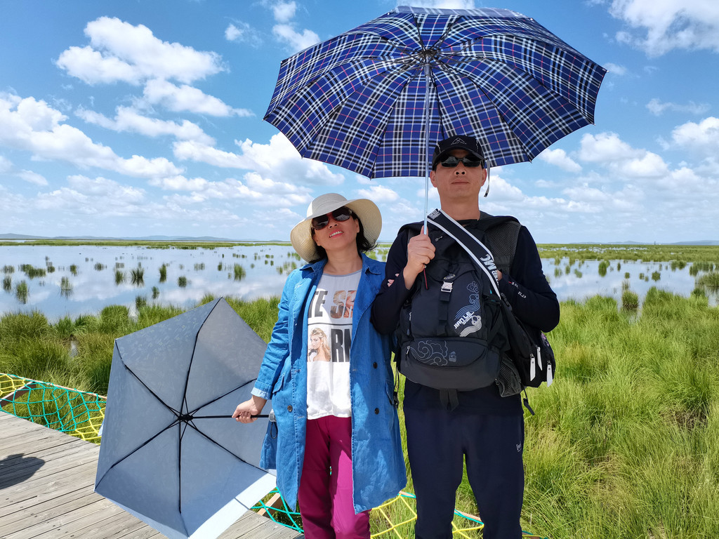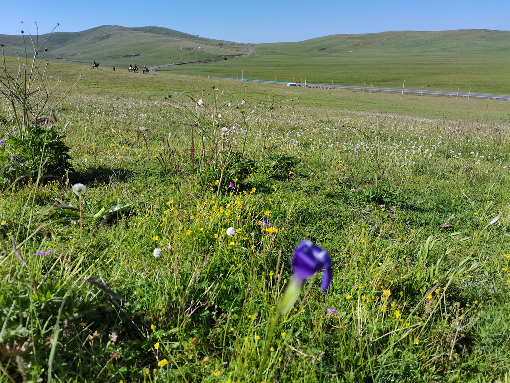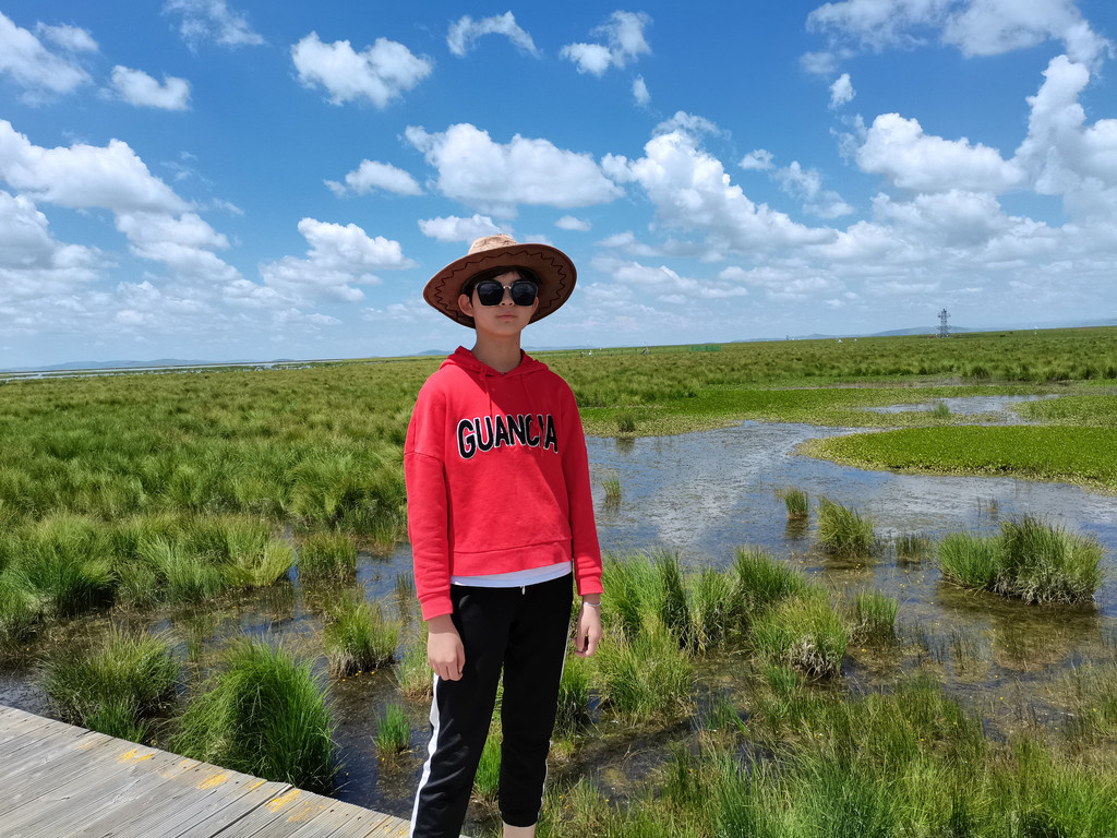 我们去花湖的时候是7月中旬,可能已经错过了它最美的季节,花湖里基本见不到所谓的花了,我们顺着步道走了一圈,由于是一望无际的草原地带,所以看着不远的地方,其实一圈走下来大约两个多小时呢。