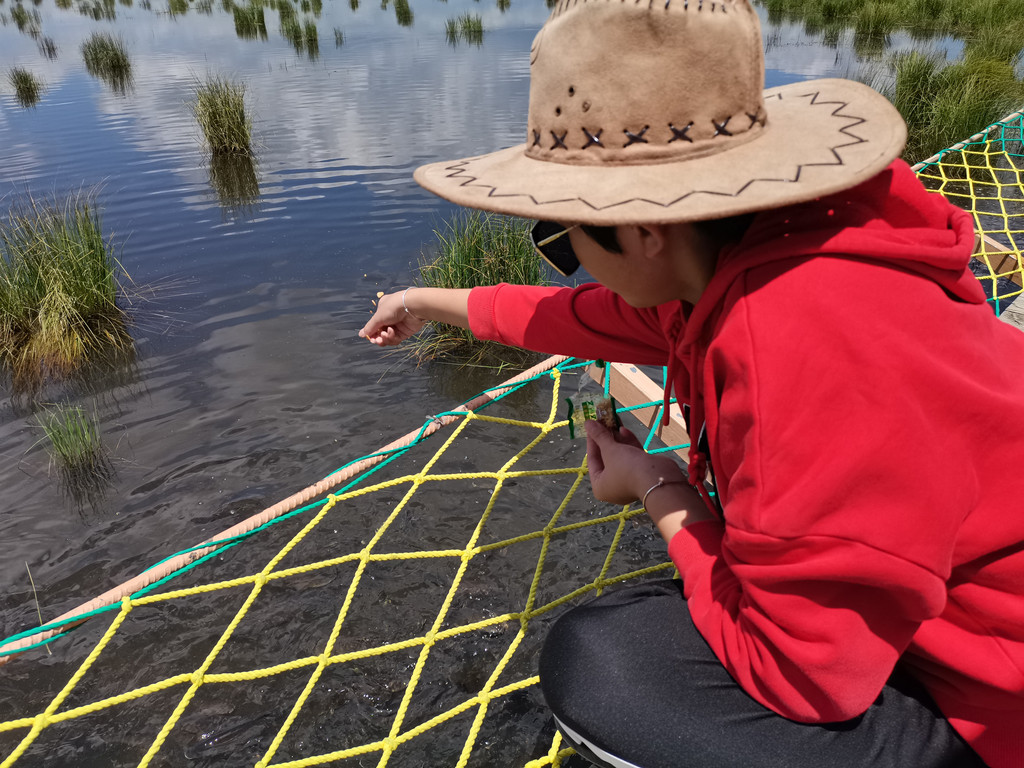 湖边建有木质栈桥,一直延伸到水中,沿着栈道走到湿地深处,沿途都是拍照的好场所。花湖是众多野生飞禽的主要栖息地,湖面上游弋着黄鸭、斑头雁、天鹅、黑颈鹤等珍稀动物,还有高原鱼类和其他珍稀动物。坐在湖边或者栈道上的亭子里,常有黑颈鹤从湖面上掠过。