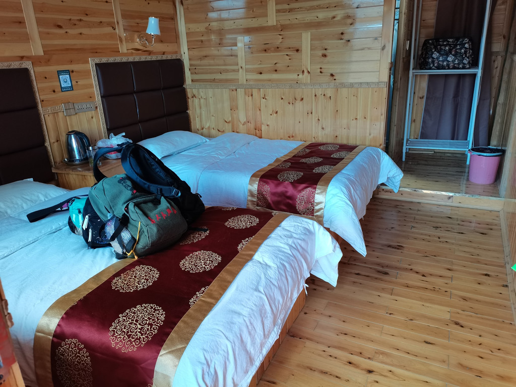 扎尕那是最近非常出名的小众网红景点,此行必不可少,由于那里都是最原始的藏族村落连成,所以听说那里的住宿条件一般还相对比较紧张,果不其然,在网上查了一下,我们只订到一间合适的房子,仅剩的房源价格都过高,这样的话就意味着我们两家无法住到一起,于是我们决定到时候我们家入住扎尕那,另一家就近提前在迭部县城。