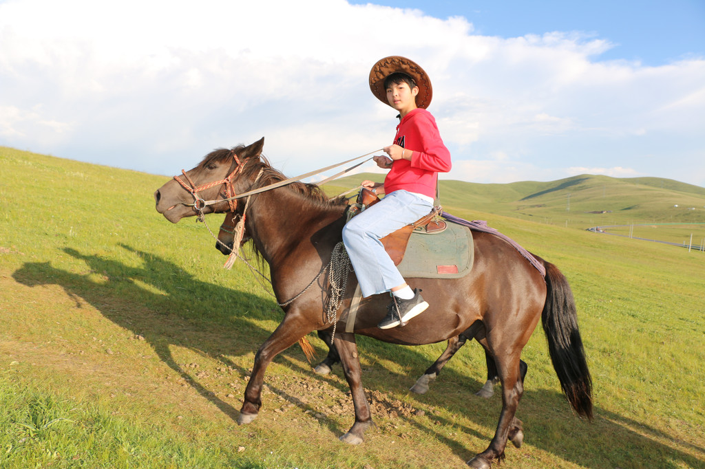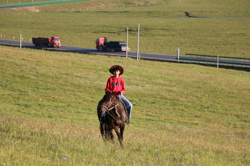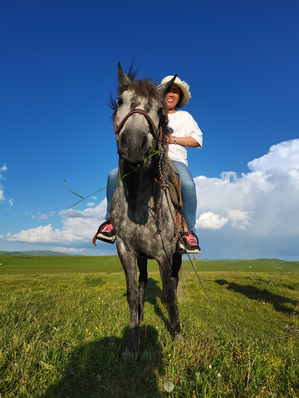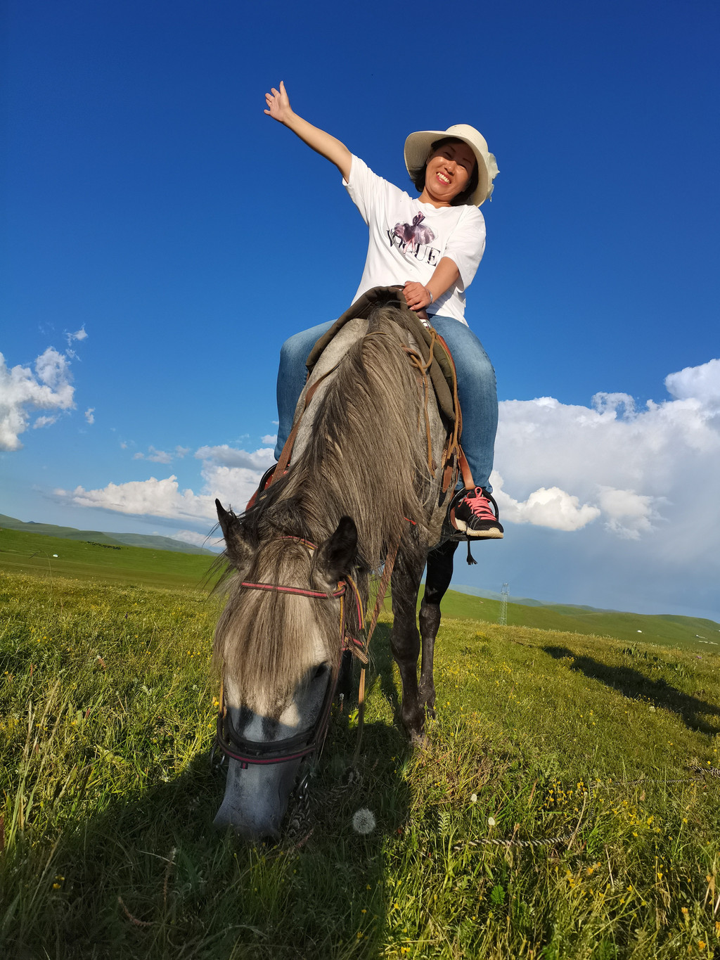 马场老板真是一个大好人,还让不敢骑马的我作个秀