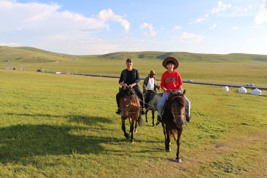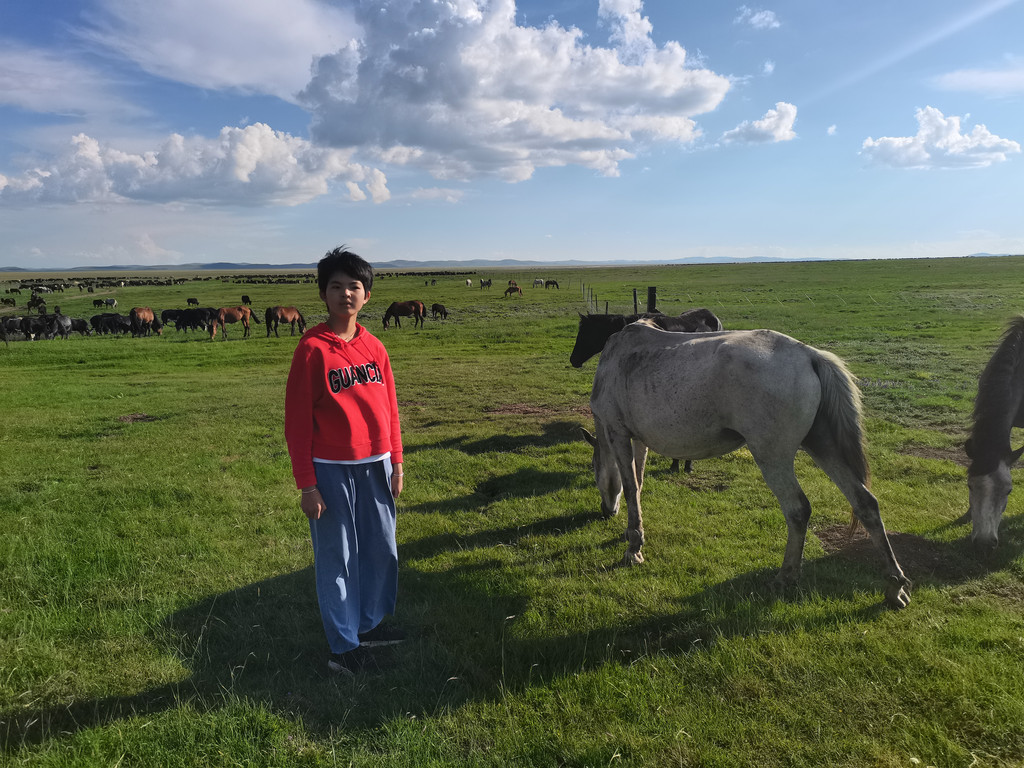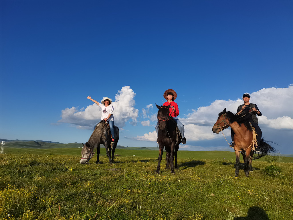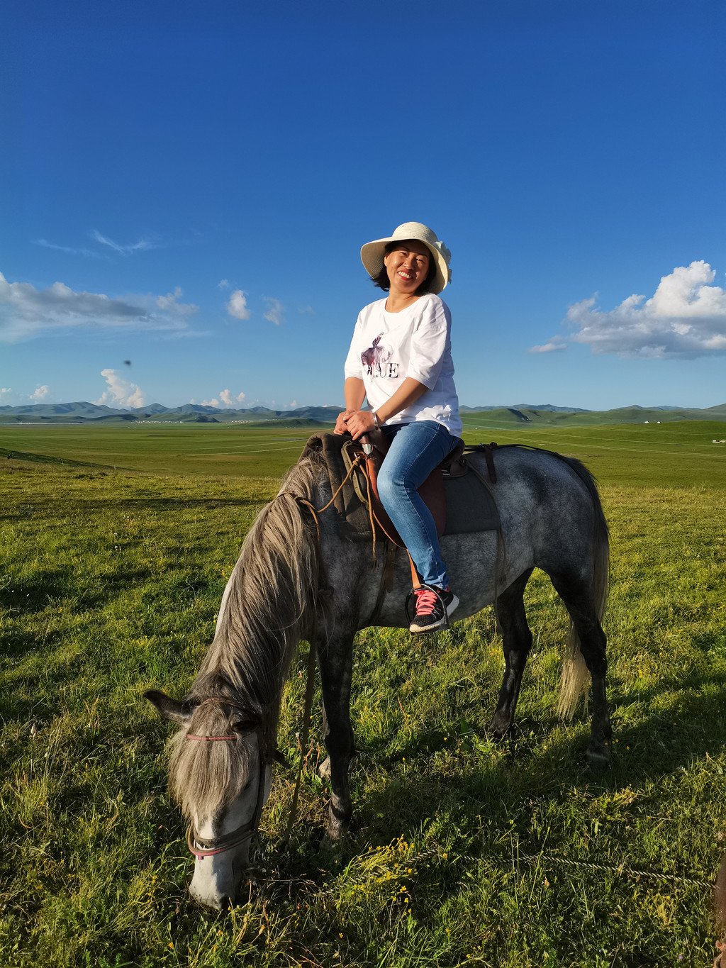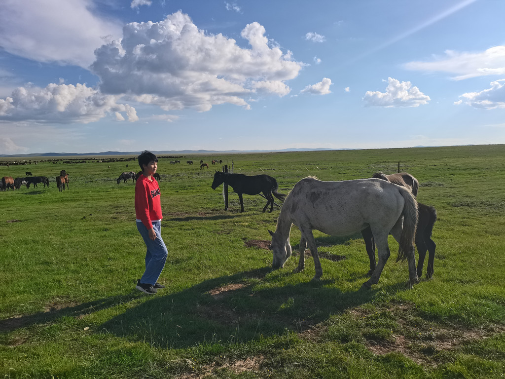 马场老板真是一个大好人,还让不敢骑马的我作个秀