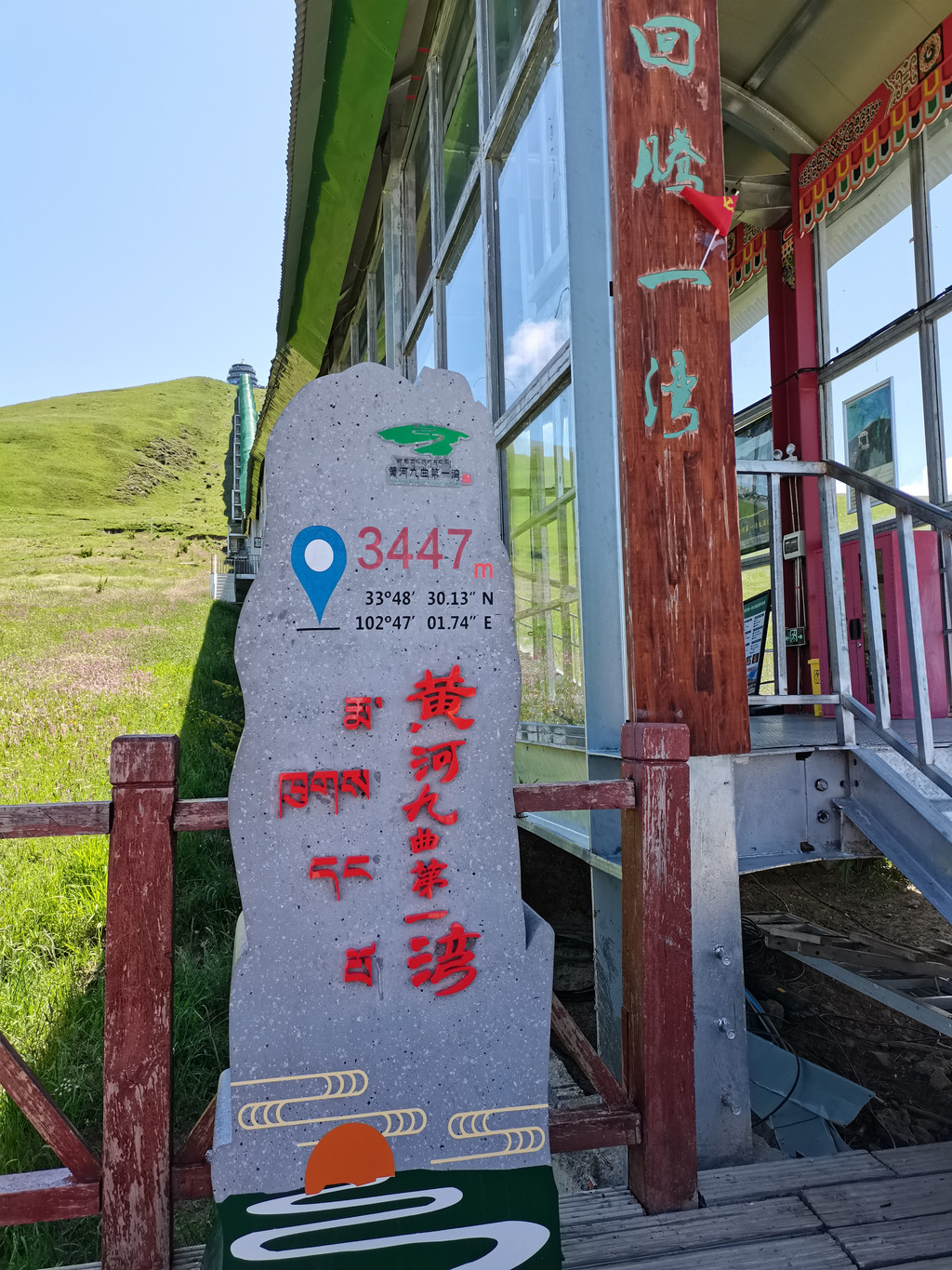黄河在四川若尔盖县唐克乡与白河汇合,形成了壮美的黄河九曲第一湾,这里能观赏到奇特且壮丽的自然景观,也是摄影师钟爱的取景地。想要观赏到黄河九曲第一湾,可以拾级而上或是乘坐电梯(个人建议还是乘手扶电梯上去,毕竟是高海拔区,一般人还是经受不了剧烈活动的),然后可以到达观景台。观景台上的景色会让你忘却一切烦恼,这也是观赏日落的最佳地点。
