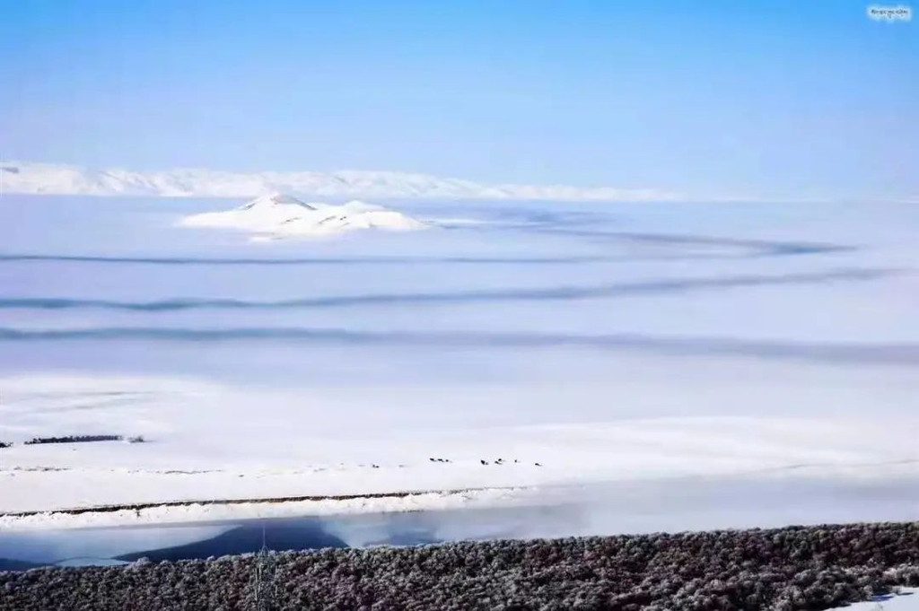 四季不同景,这里的冬,纯白无暇,远方与天际连成一片的白, 被冰雪覆盖的黄河九曲第一湾,正在谱写与你的故事。