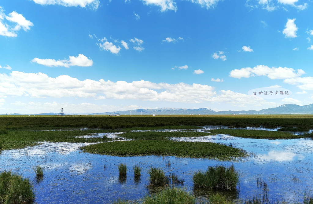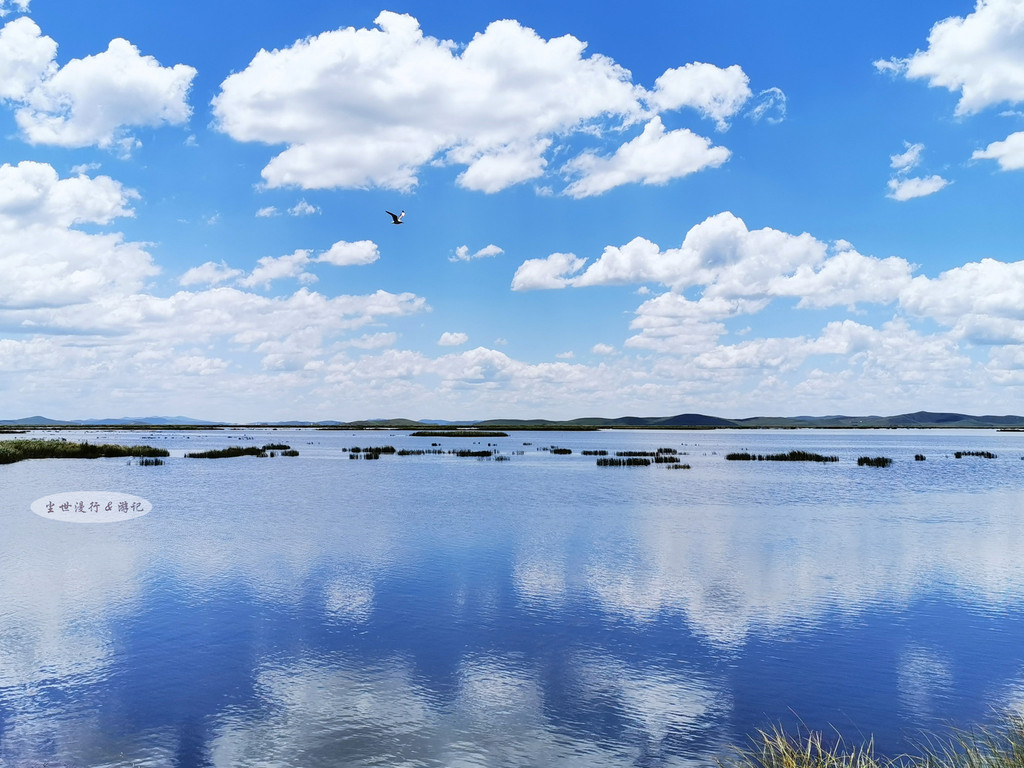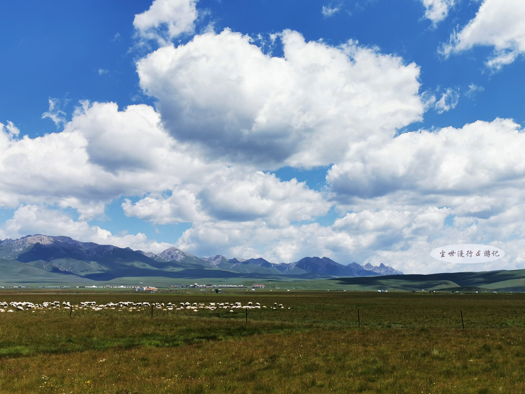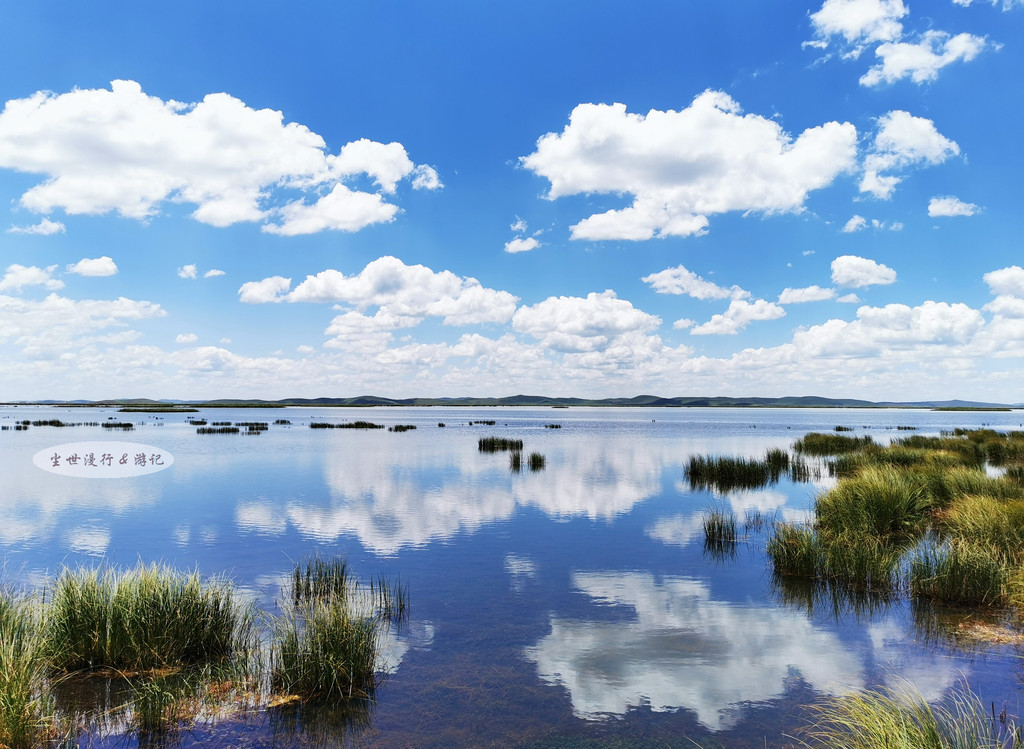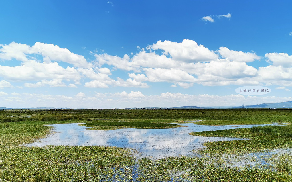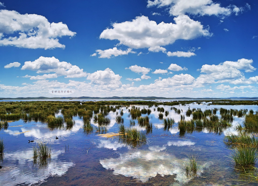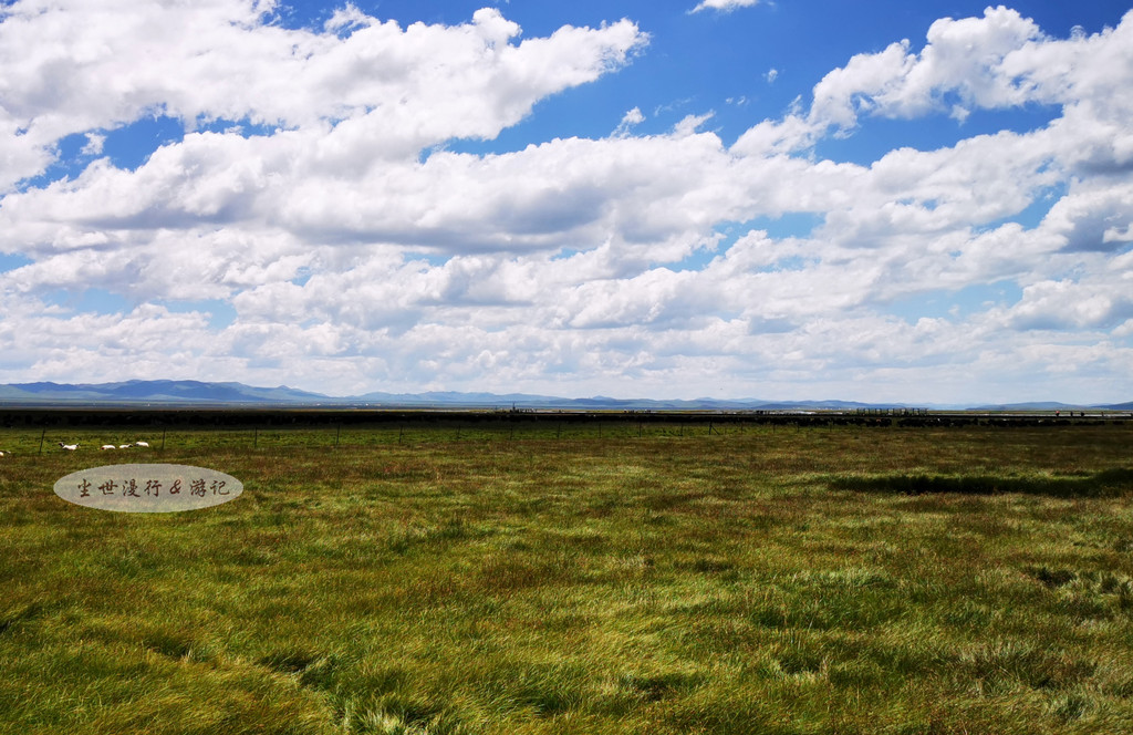 蓝天白云,水草繁茂,牛羊遍野,天水一色……